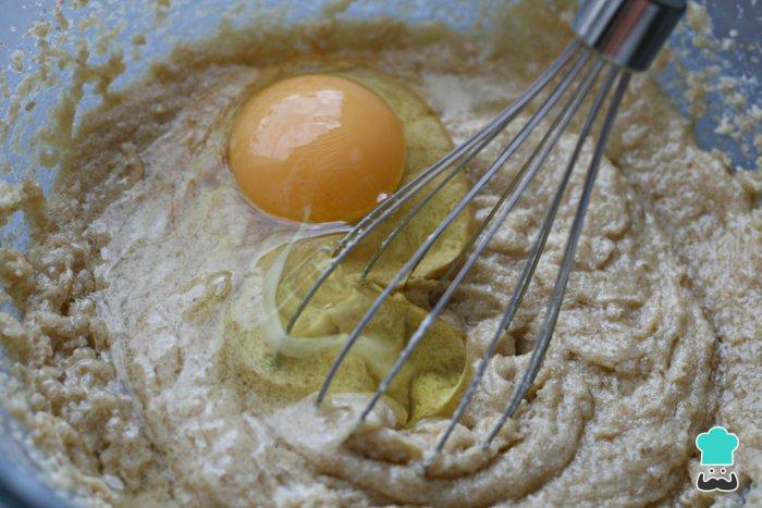 Una vez integrados los ingredientes anteriores, añadimos los huevos uno a uno y seguimos batiendo. La mezcla debe crecer conforme batimos.