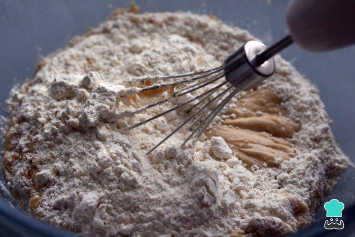 Para seguir con la preparación de la masa de nuestras Chips Ahoy, añadimos la harina y mezclamos con mucho cuidado. No deben quedar grumos.
