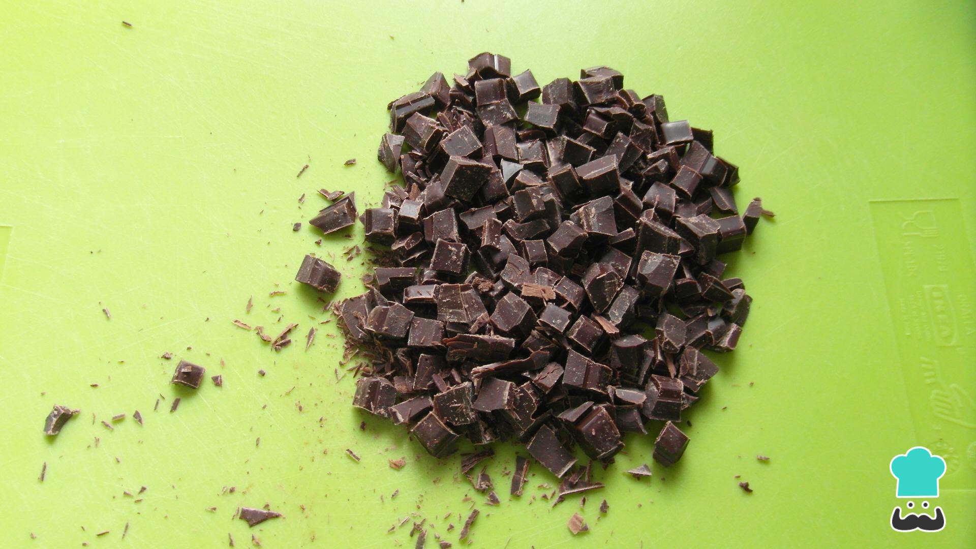 Después, pica el chocolate en trozos pequeños y resérvalo para más tarde.