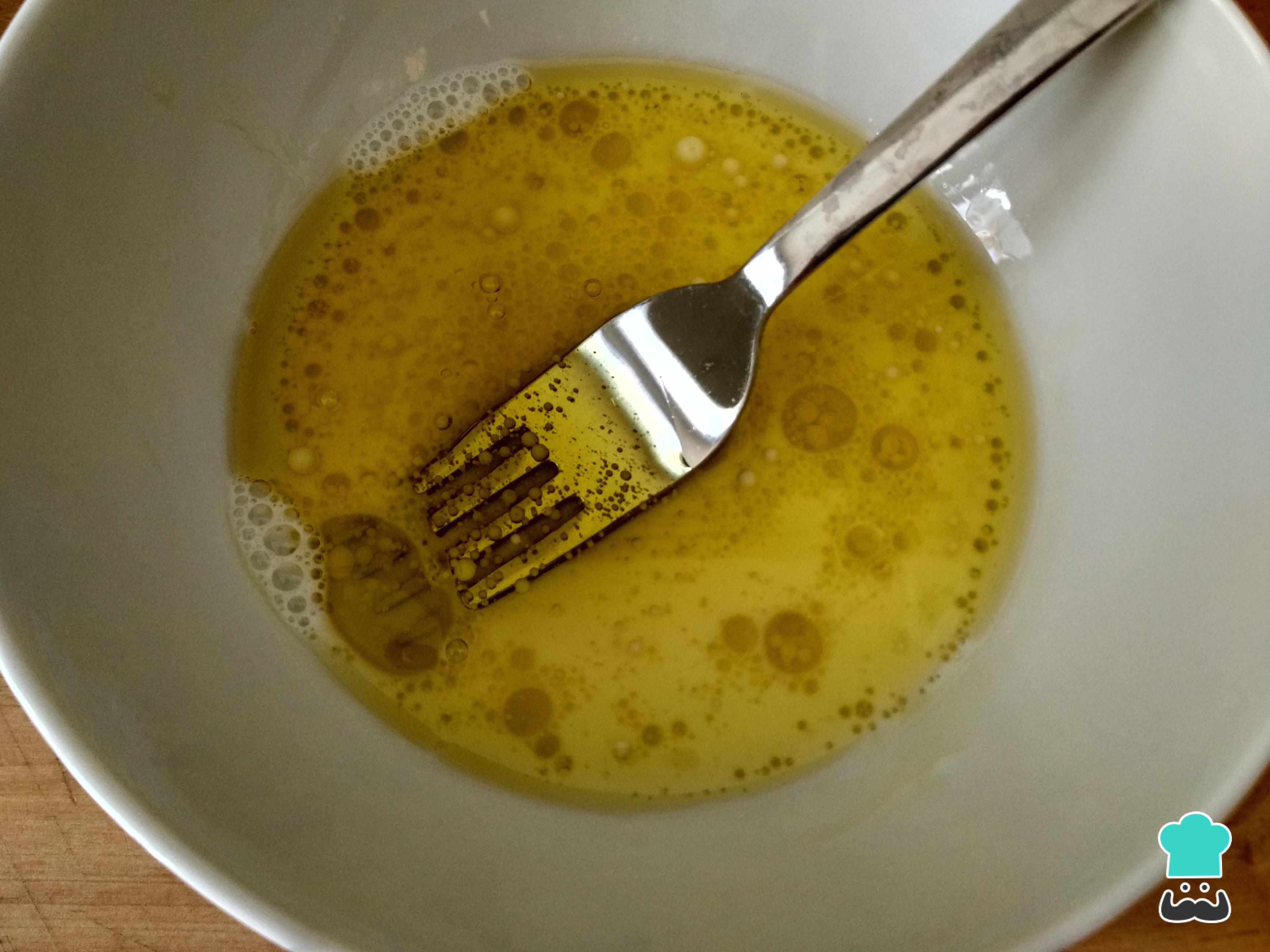 Mezclamos los ingredientes líquidos: en un bol ponemos la leche y el aceite y removemos con un tenedor o varillas. Para este receta de galletas saladas conviene utilizar un aceite de oliva suave.