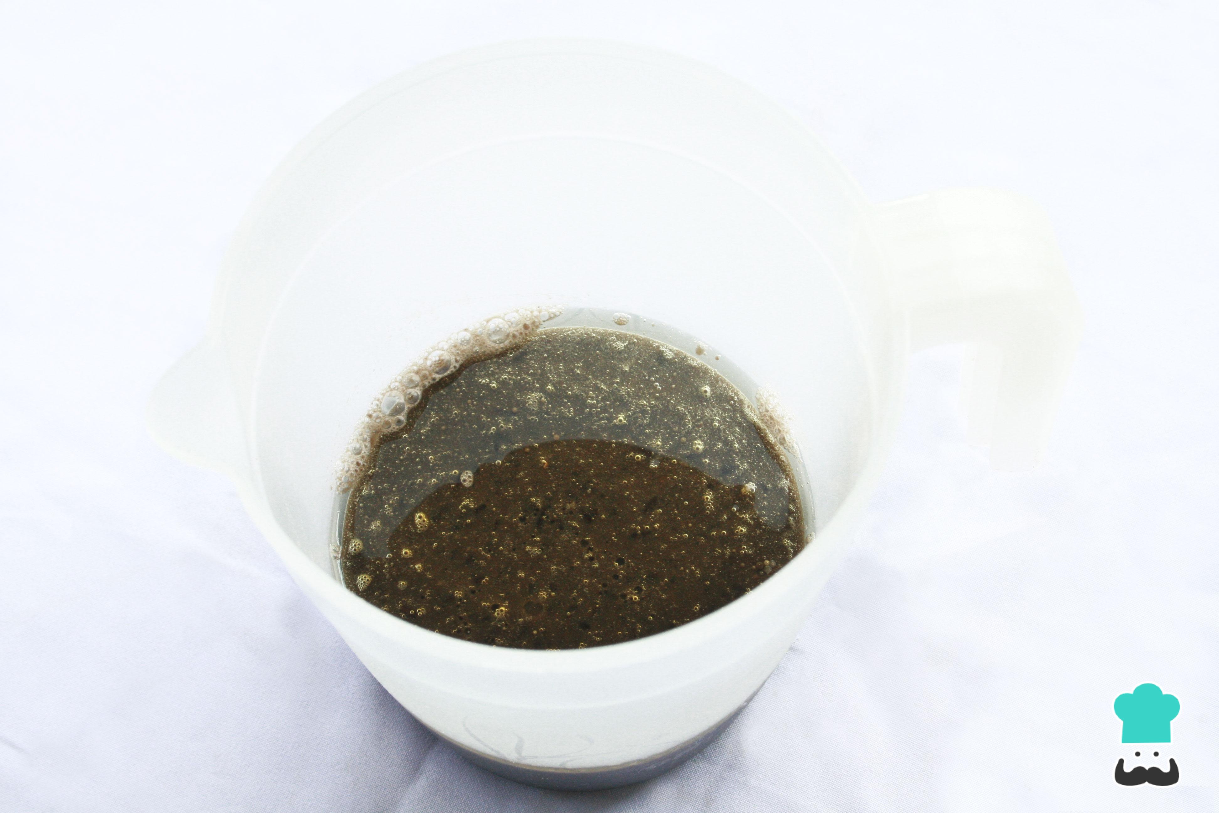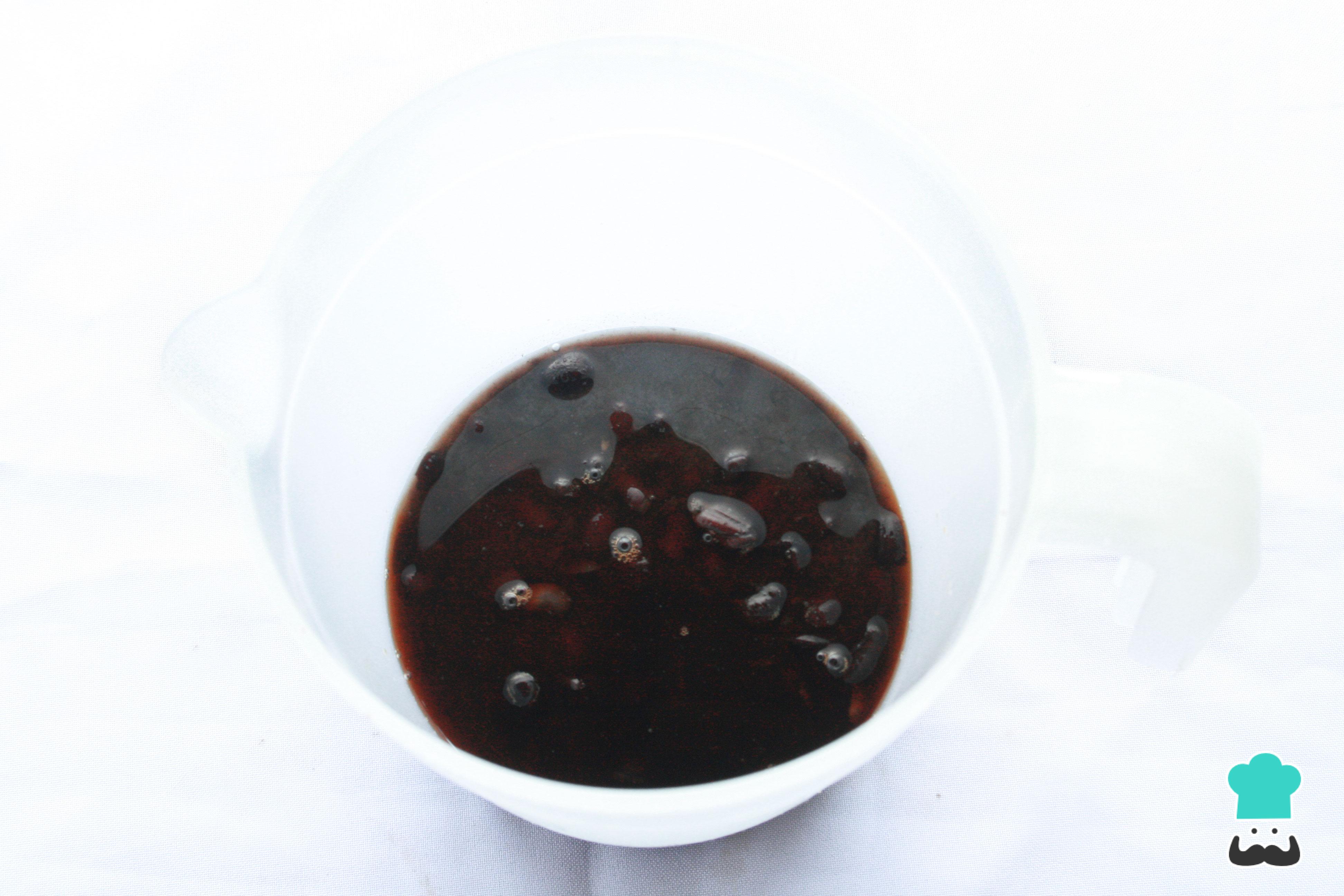 Tritura los frijoles negros (caraotas o porotos) junto a la miel de piloncillo (papelón). Utilizamos este ingrediente como sustituto del azúcar común, mucho más saludable y natural, para elaborar unas deliciosas galletas de avena sin azúcar.