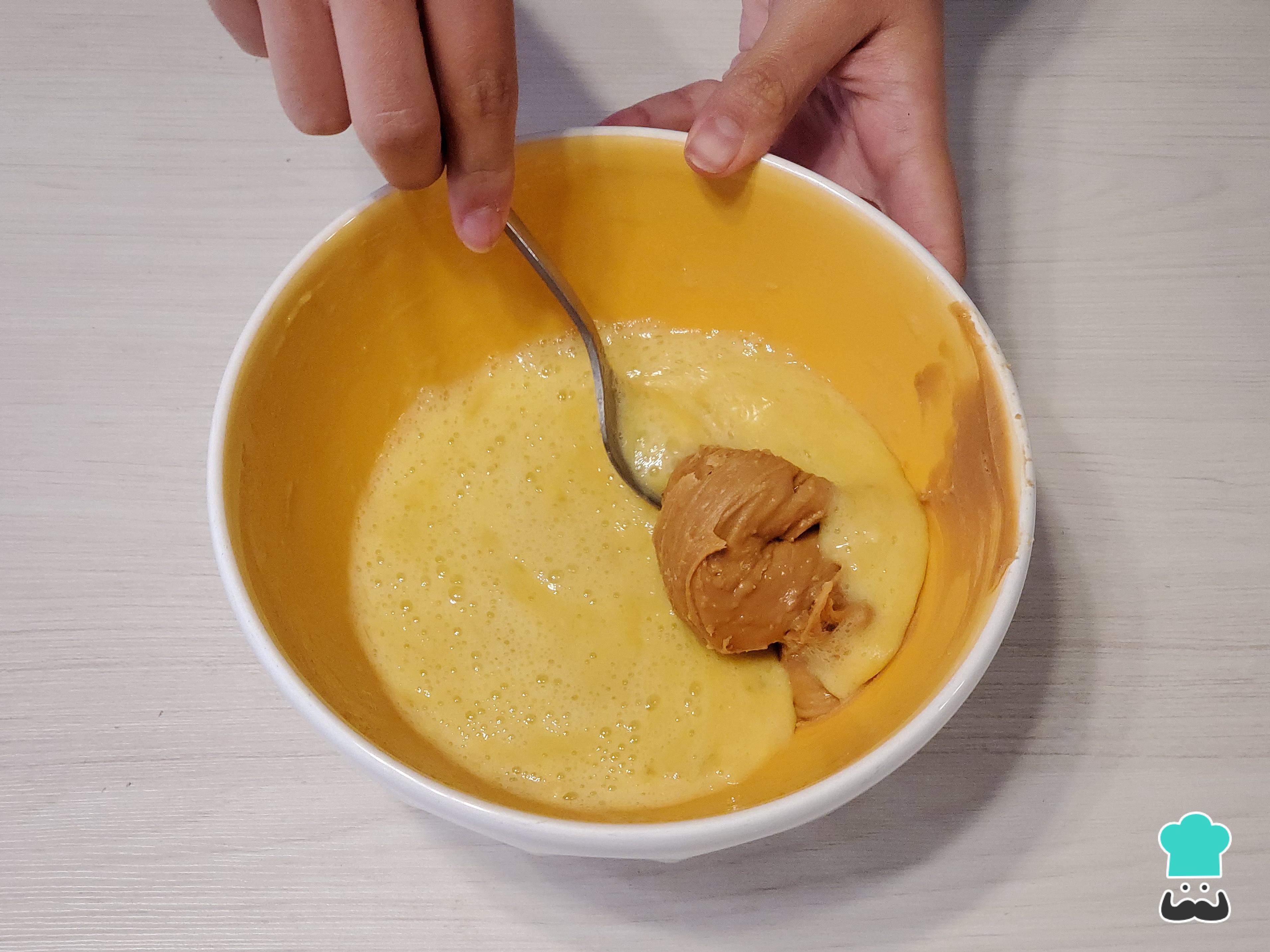 Incorpora la mantequilla de almendras o de maní y, si deseas, agrega un poco de esencia de vainilla para aromatizar la masa. Además, si los plátanos no están muy maduros o te gusta que las galletas sean bien dulces, puedes integrar 30 gramos de miel o el edulcorante de tu preferencia.