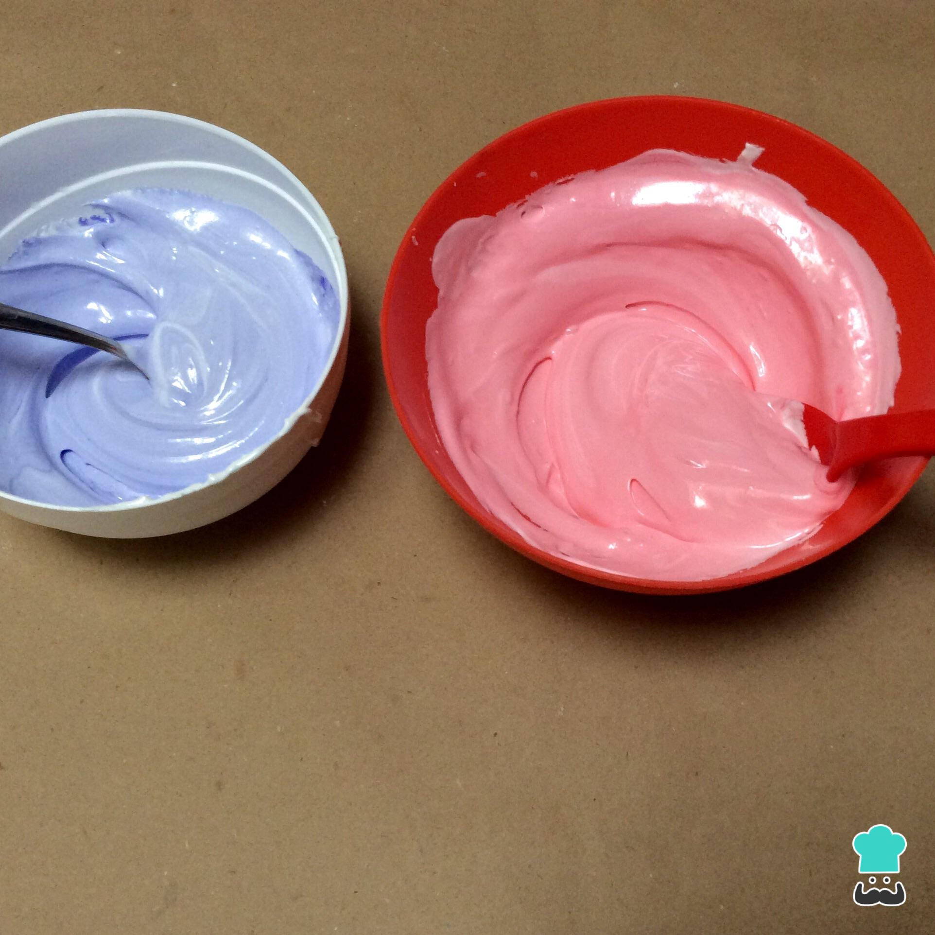 Mezcla la glasa real de los colores que desees, si deseas aprender a preparar la glasa real casera, no te pierdas esta sencilla receta.