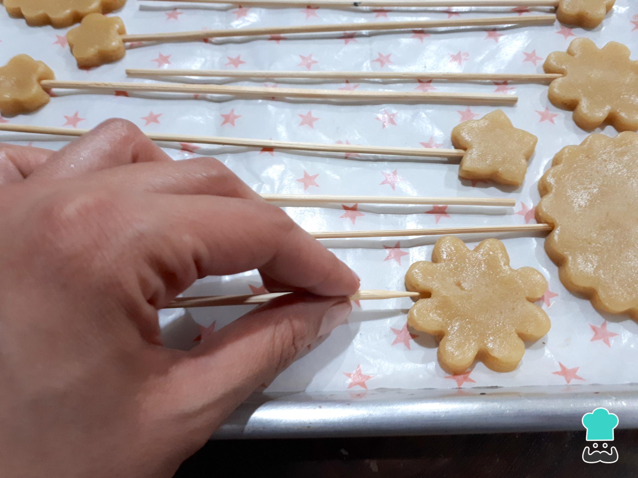 Truco: Si te parece más fácil puedes simplemente hornear las galletas sin el palito de brocheta y regalarlas en una linda caja.