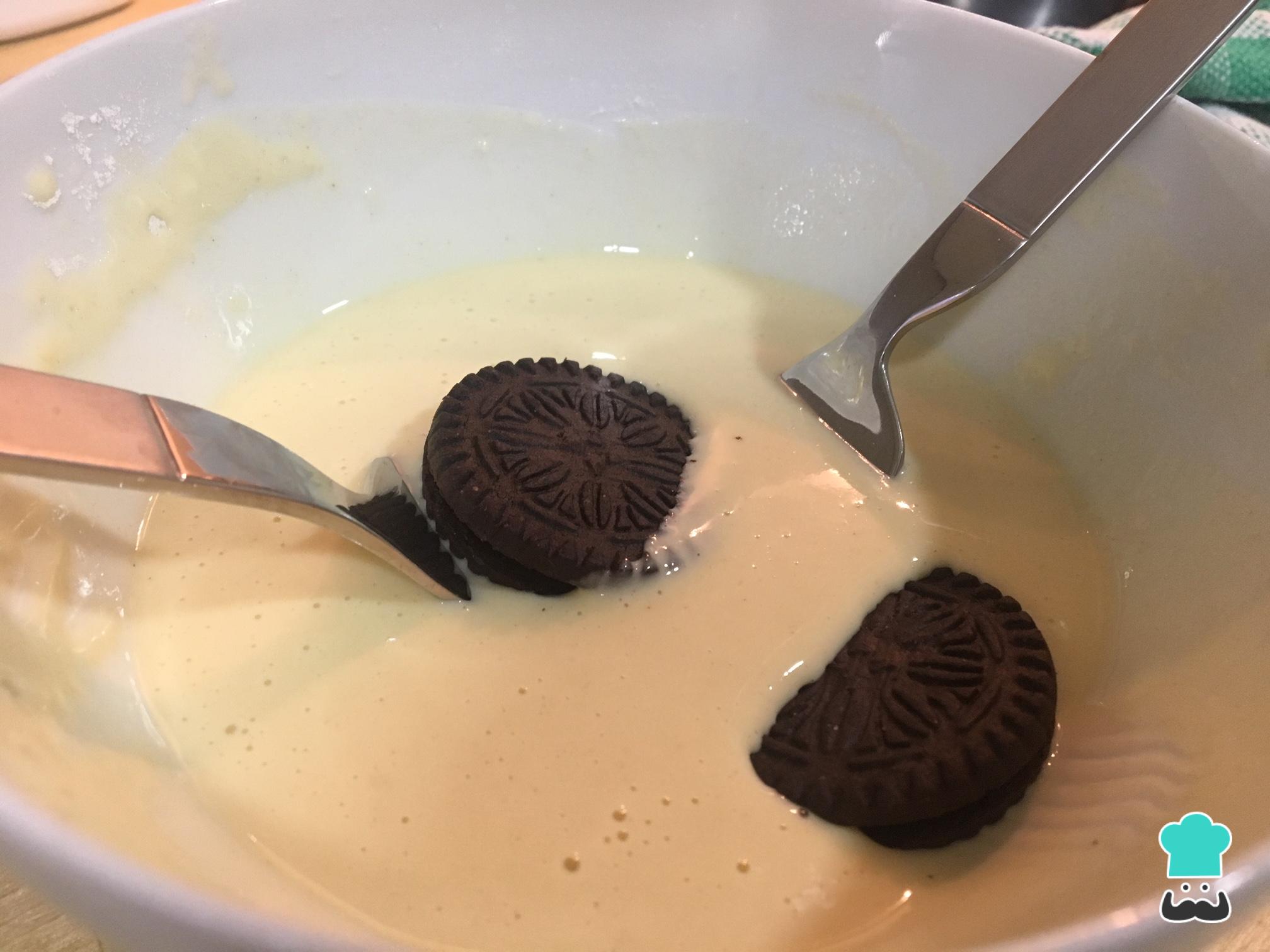 Rebozamos las galletas Oreo con nuestra mezcla, hundiéndolas bien en la masa para que se impregnen por todos lados.
