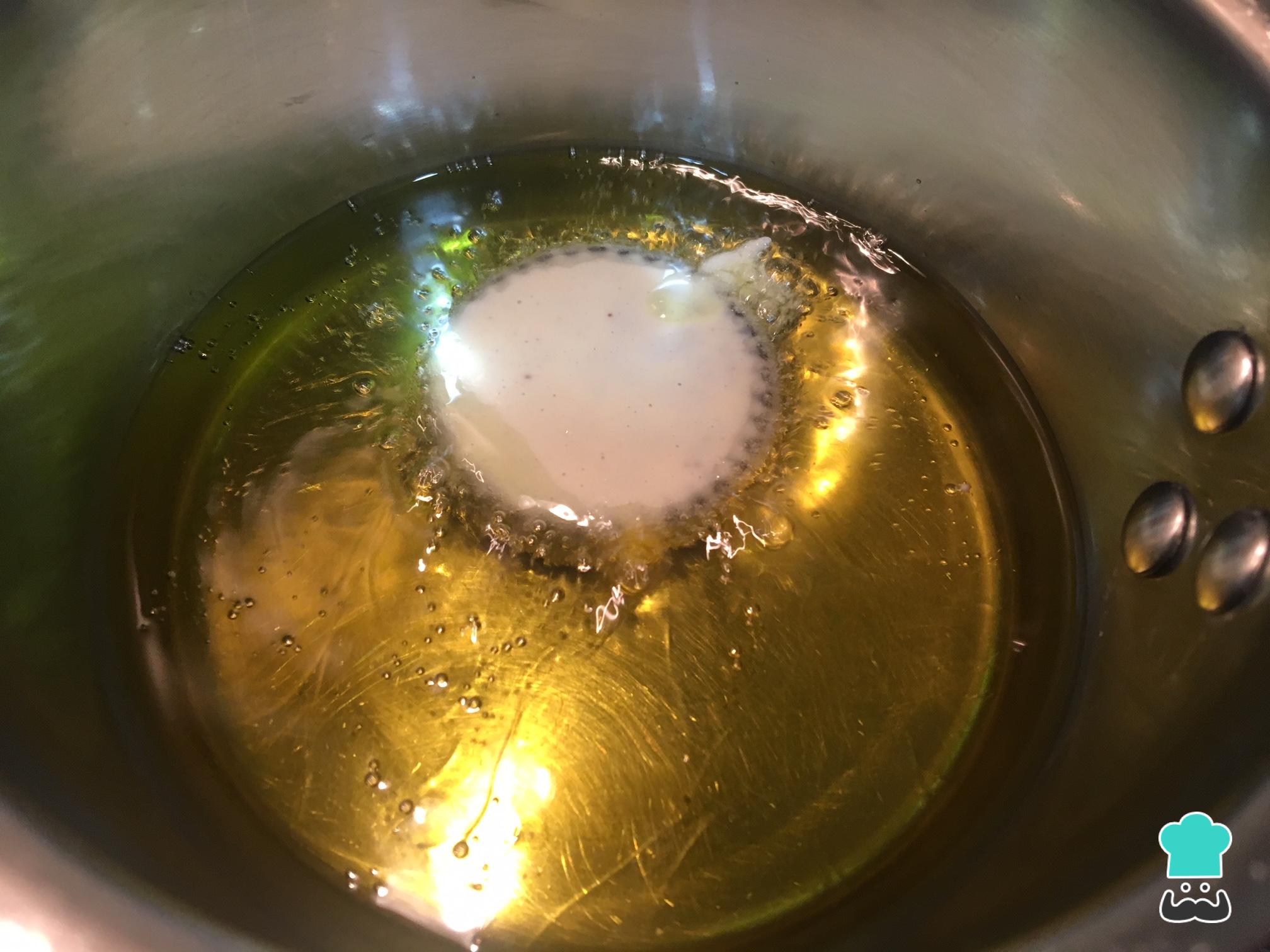 Freímos las galletas Oreo en abundante aceite caliente y les damos la vuelta para que queden doradas por ambos lados. Para freír las galletas podemos usar un aceite suave como el de girasol.