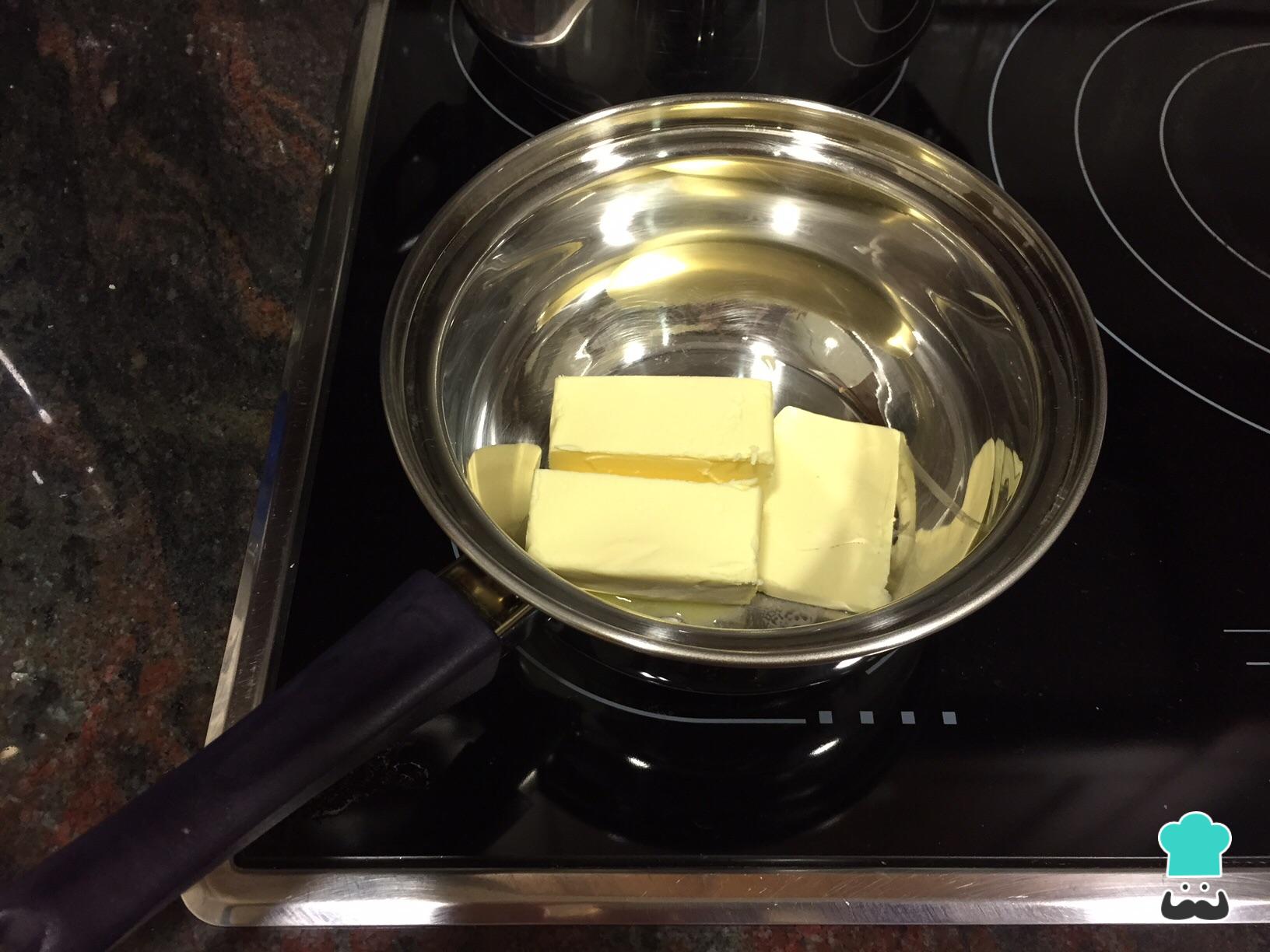 Para preparar estas ricas galletas saladas, empezaremos deshaciendo la mantequilla en un cazo, a fuego lento.