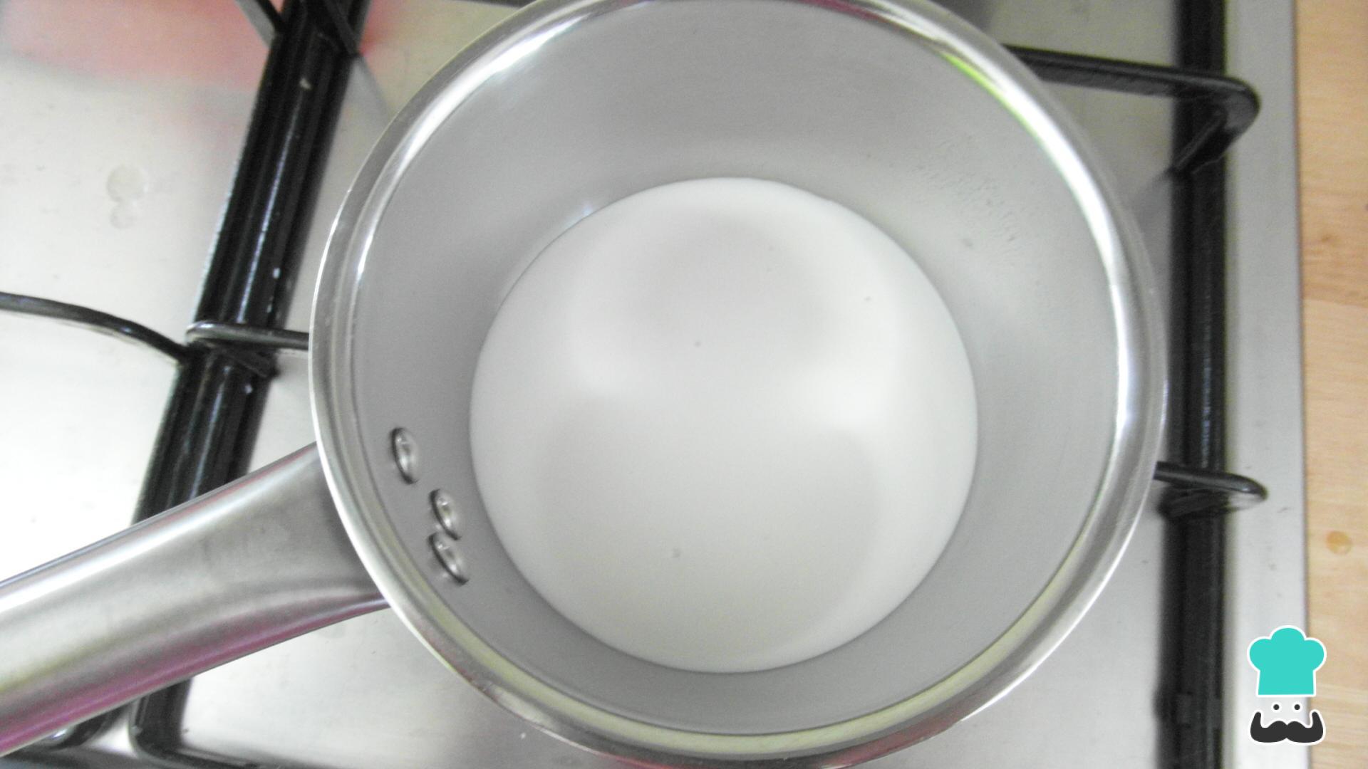Coloca la leche de coco en una cacerola a fuego medio hasta que hierva.