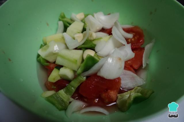 Truco: si lo deseas, puedes añadir más pimiento verde o pepino. Además, también puedes preparar el gazpacho sin vinagre.