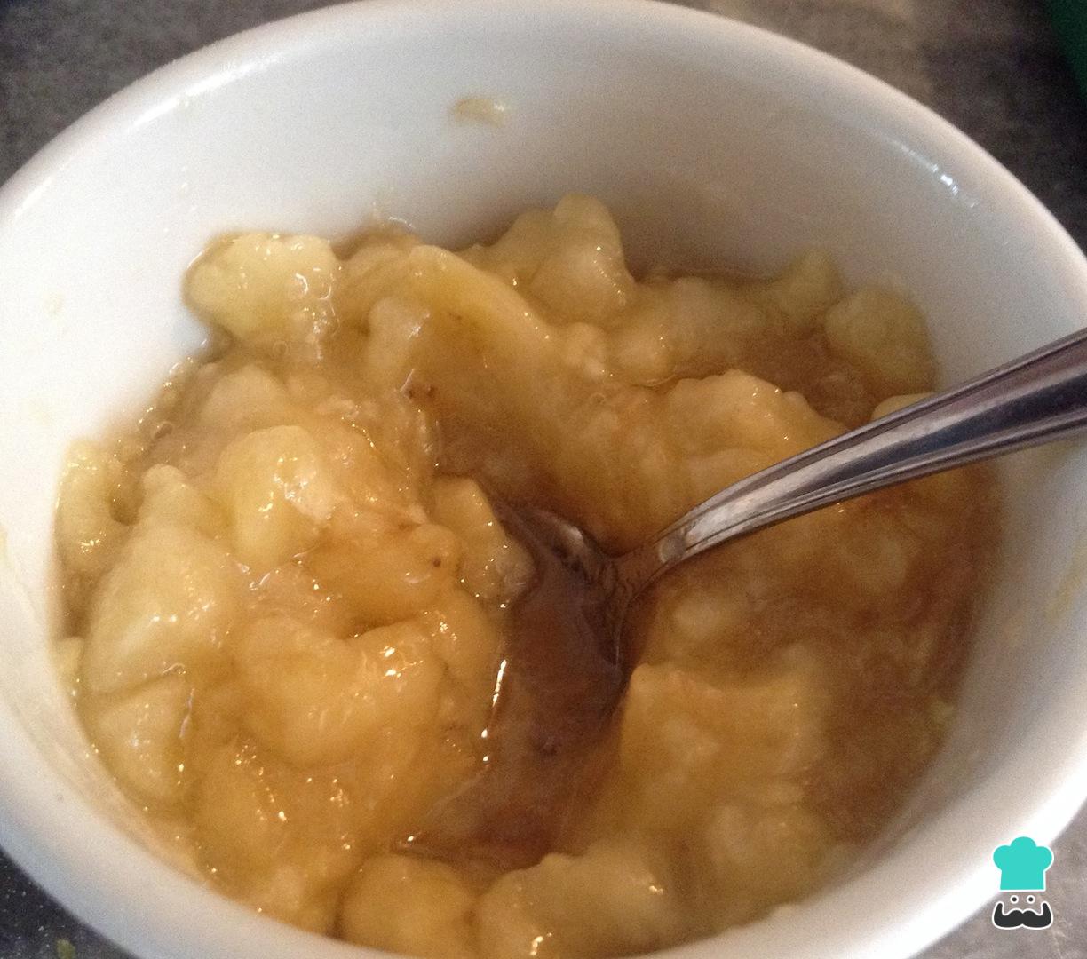 Con la ayuda de un tenedor realiza un puré con el plátano, banano o cambur.