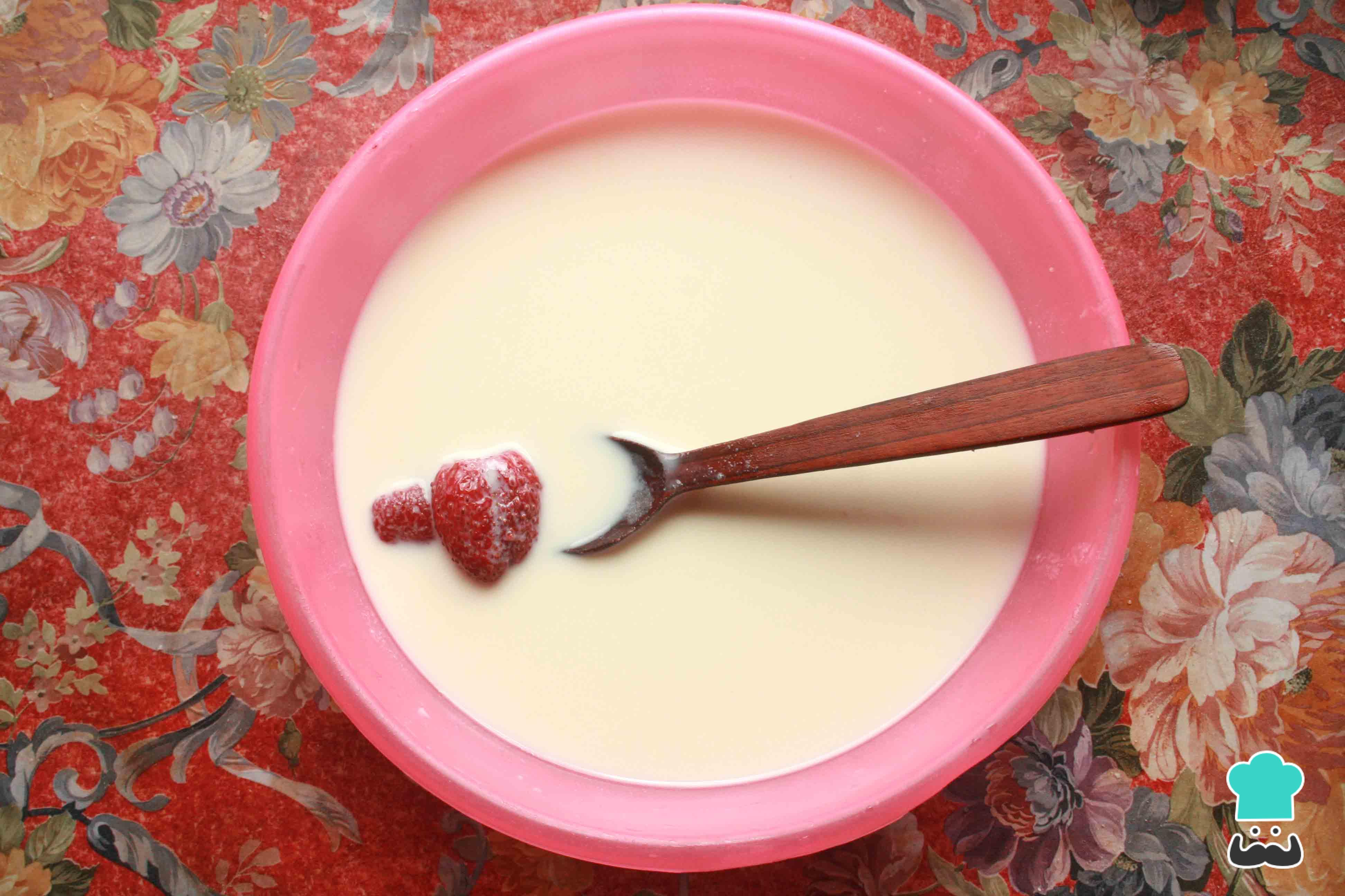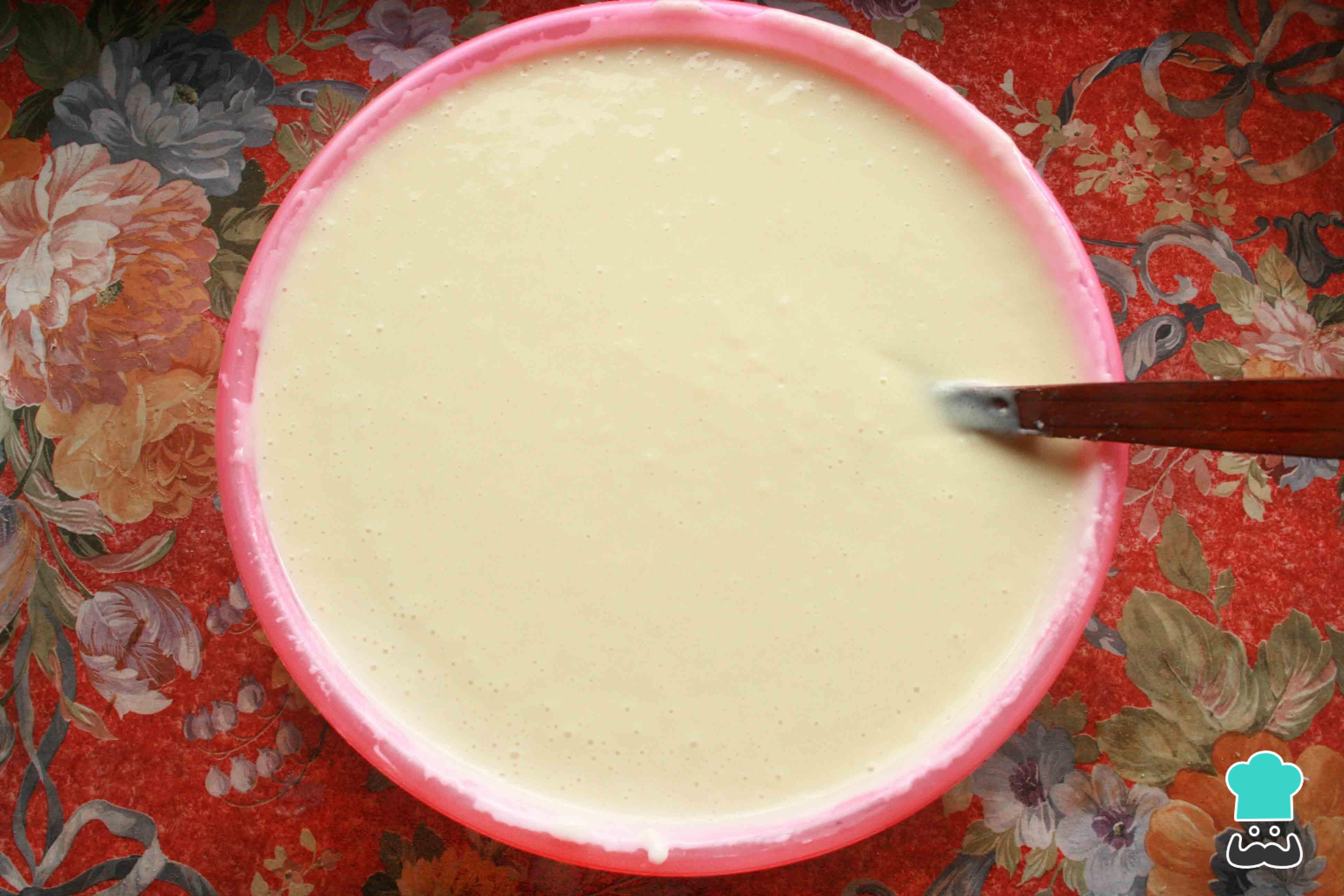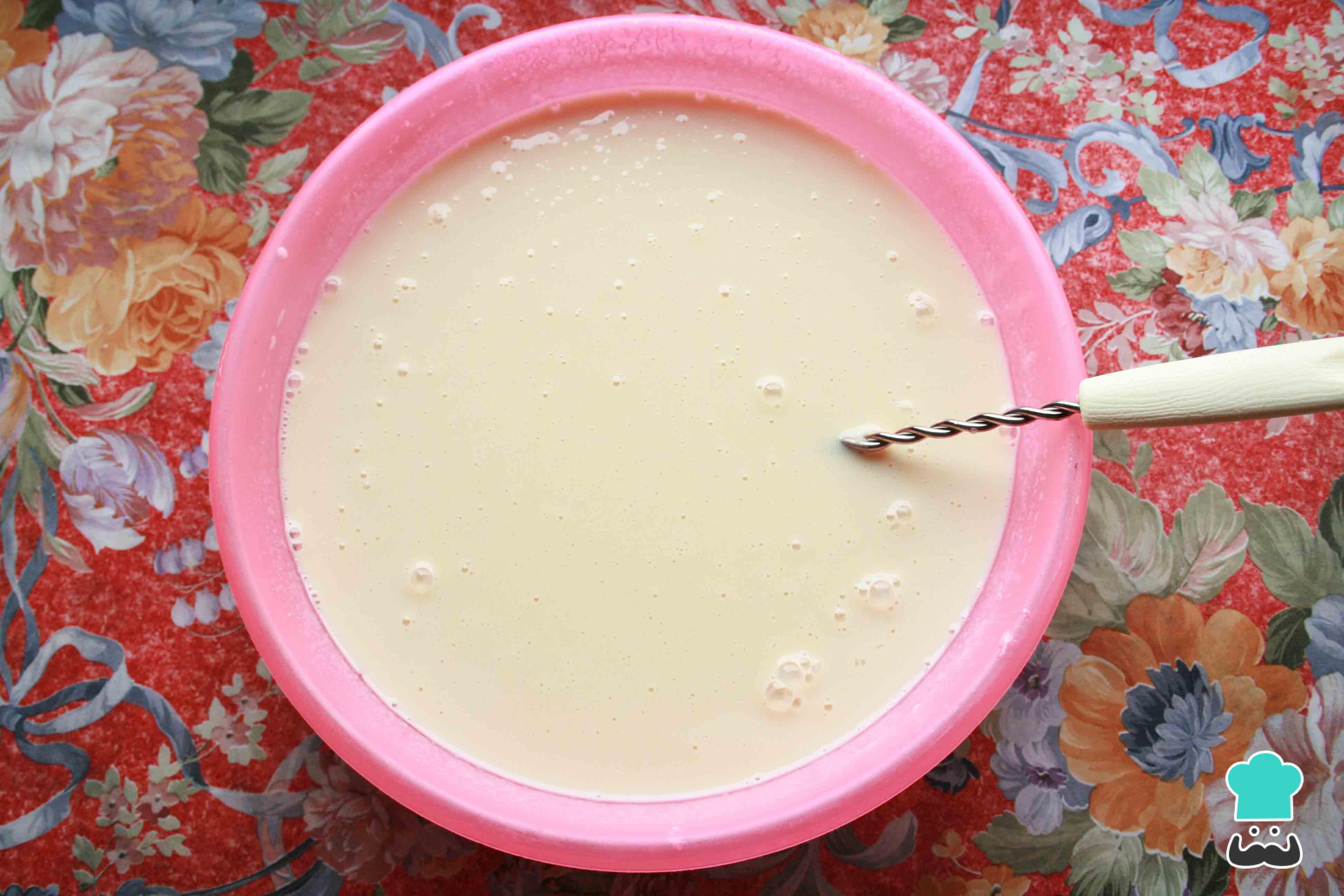 Mezcla la leche condensada, la leche evaporada y el ponche crema. Reserva.