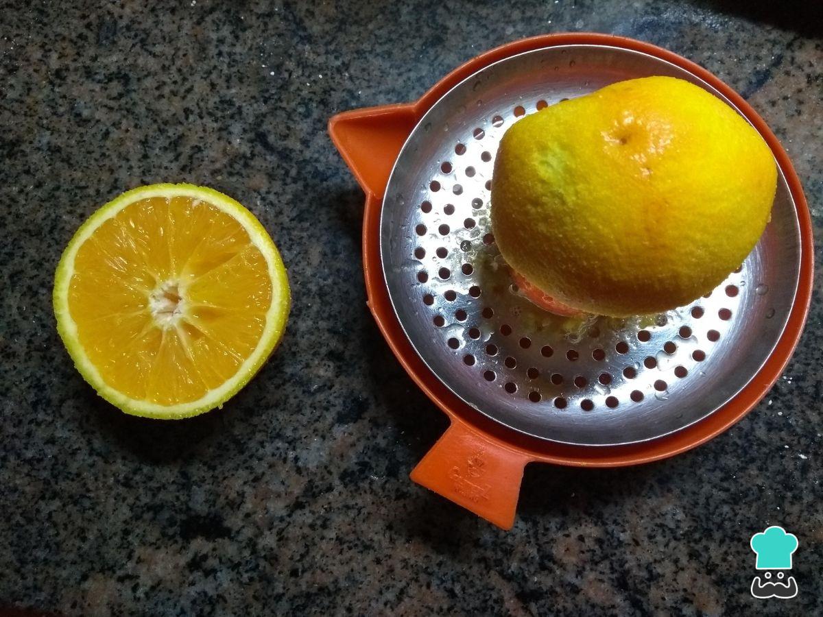 Para empezar con la receta de glaseado de naranja, deberás exprimir la naranja retirando las semillas.