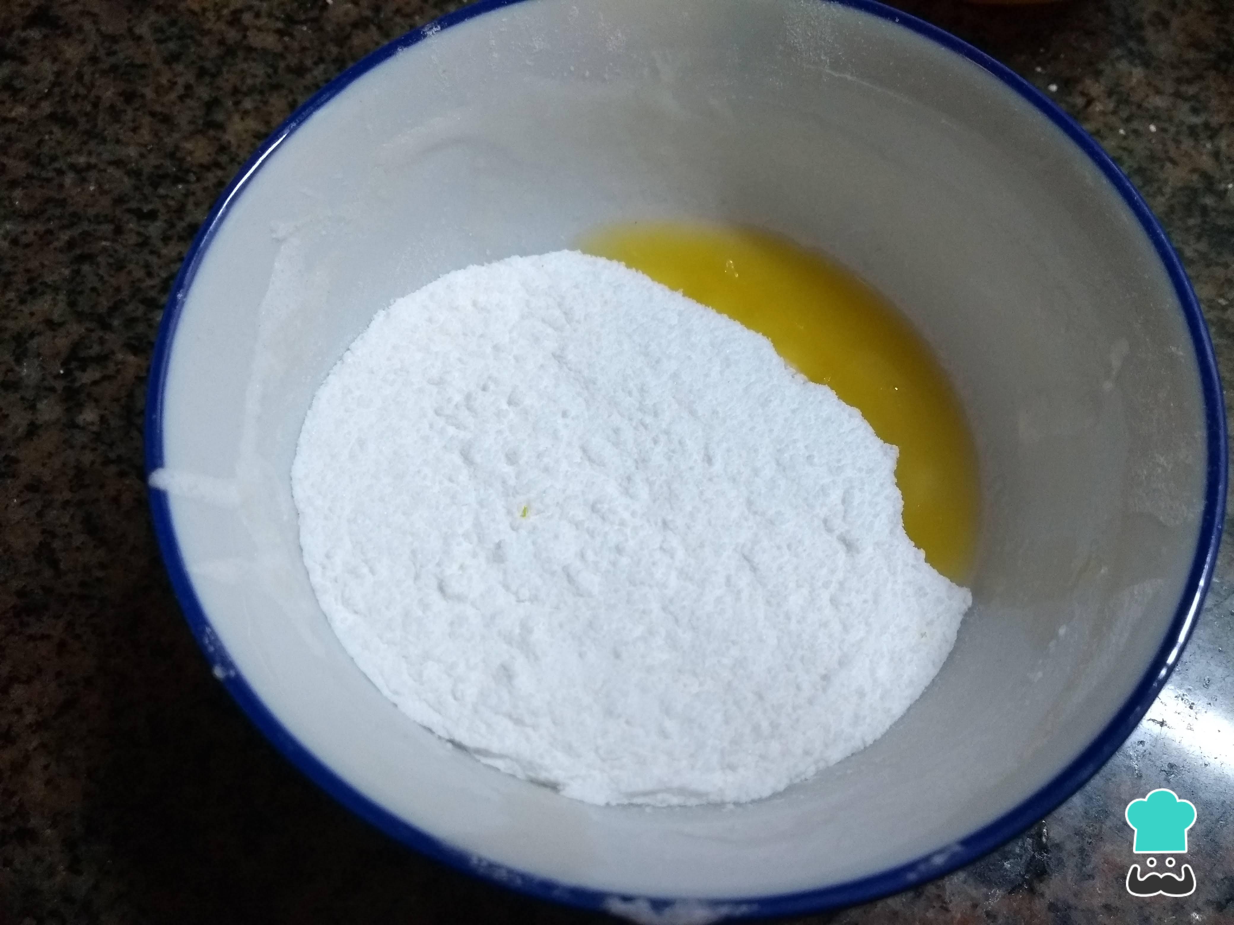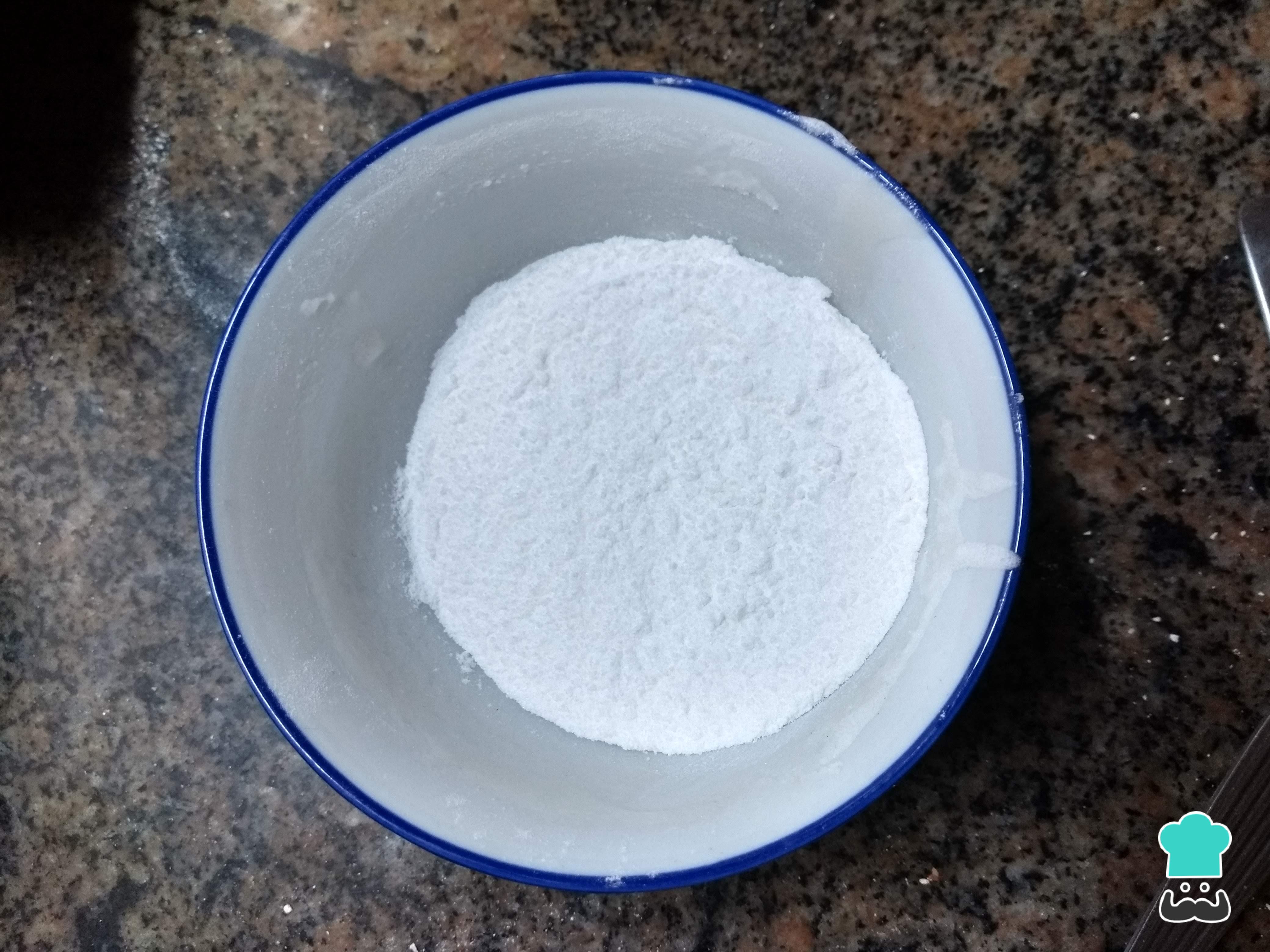 Dispón el azúcar impalpable en un cuenco para mezclar cómodamente.