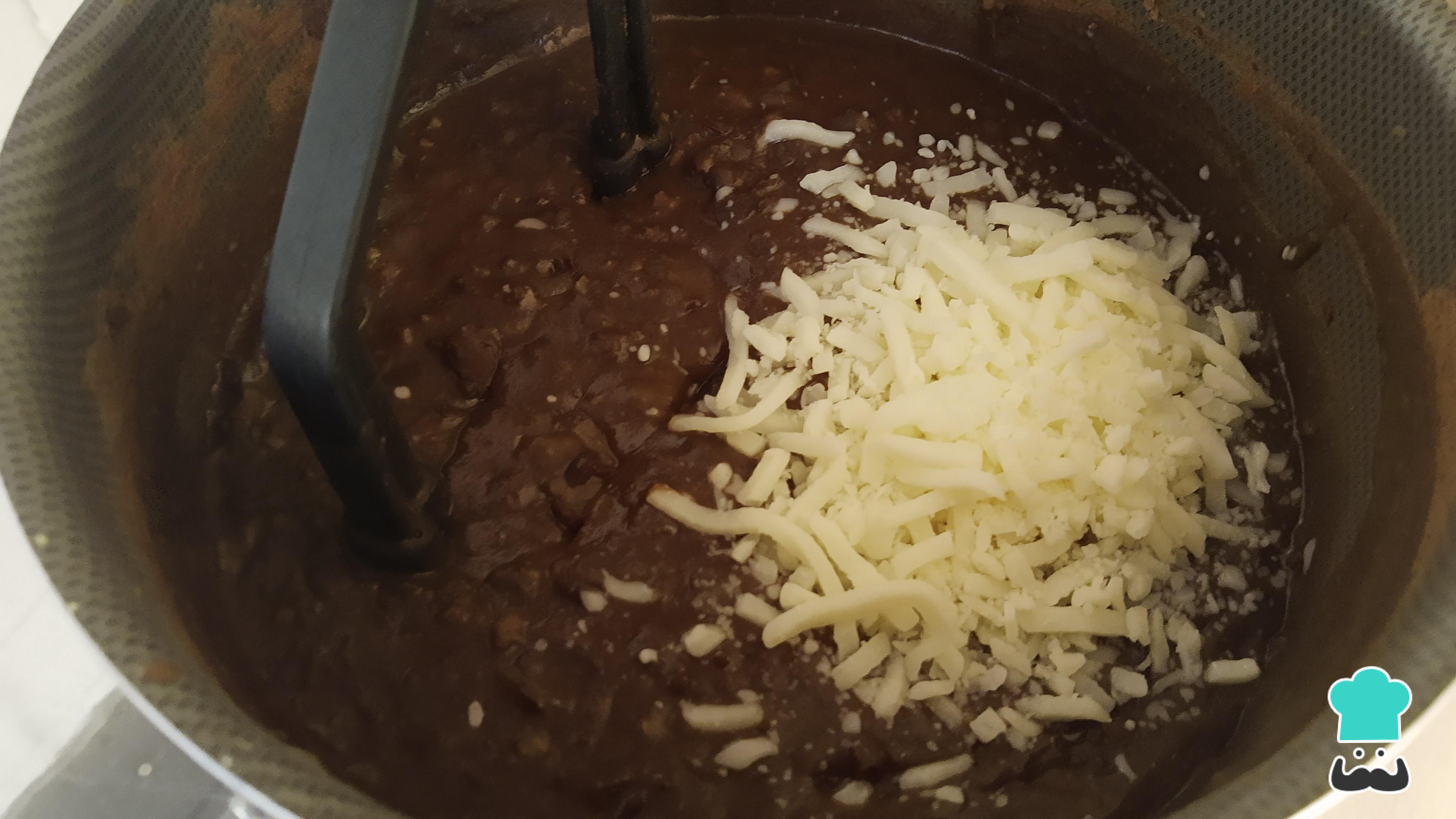 Truco: para que sea más fácil machacar los frijoles puedes añadir un poco de caldo de pollo o un poco de agua, pero sin dejar que abunde el líquido.