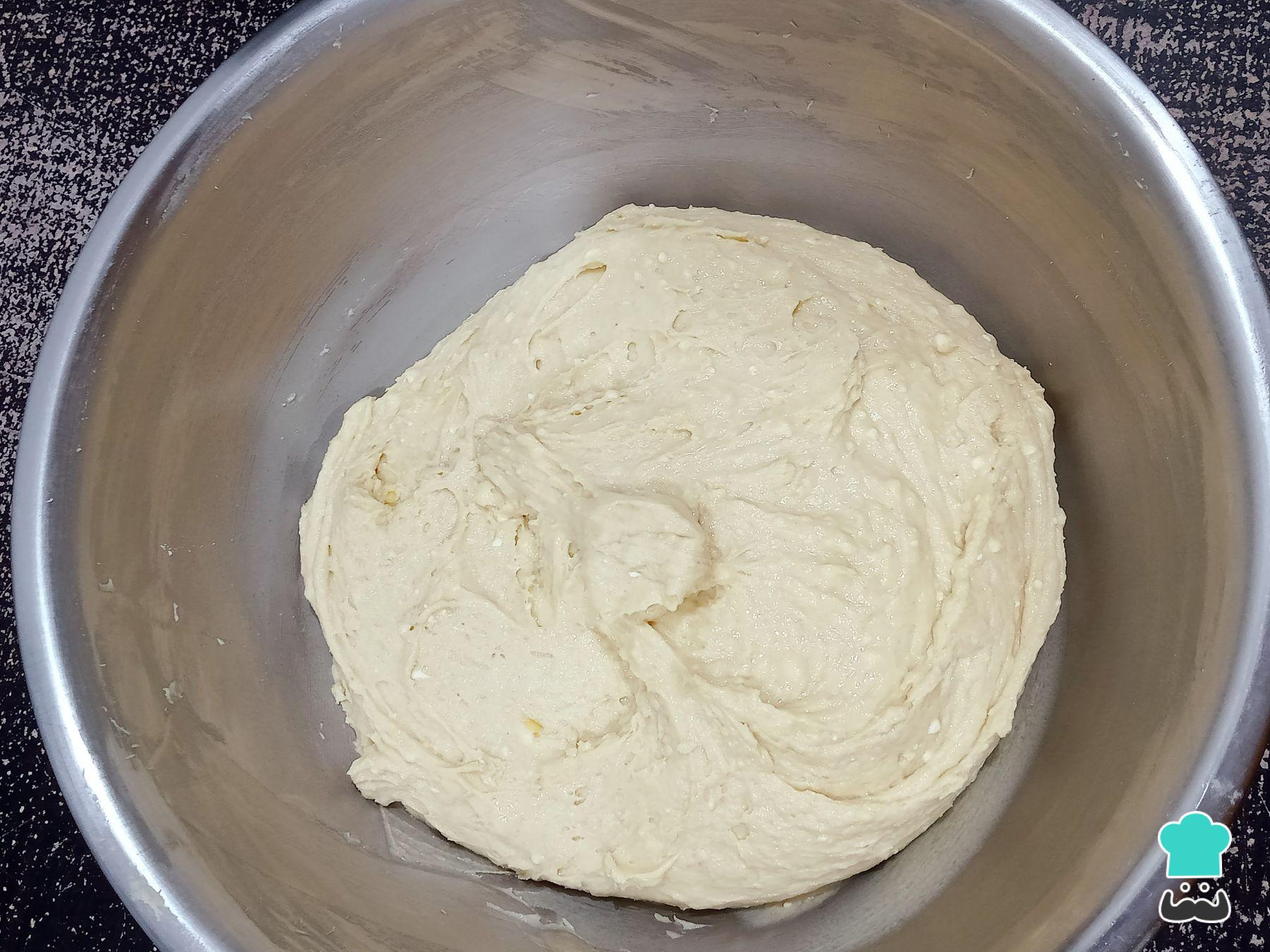 Bate hasta integrar por completo, cubre la masa con plástico adherente y deja reposar por 20 minutos.