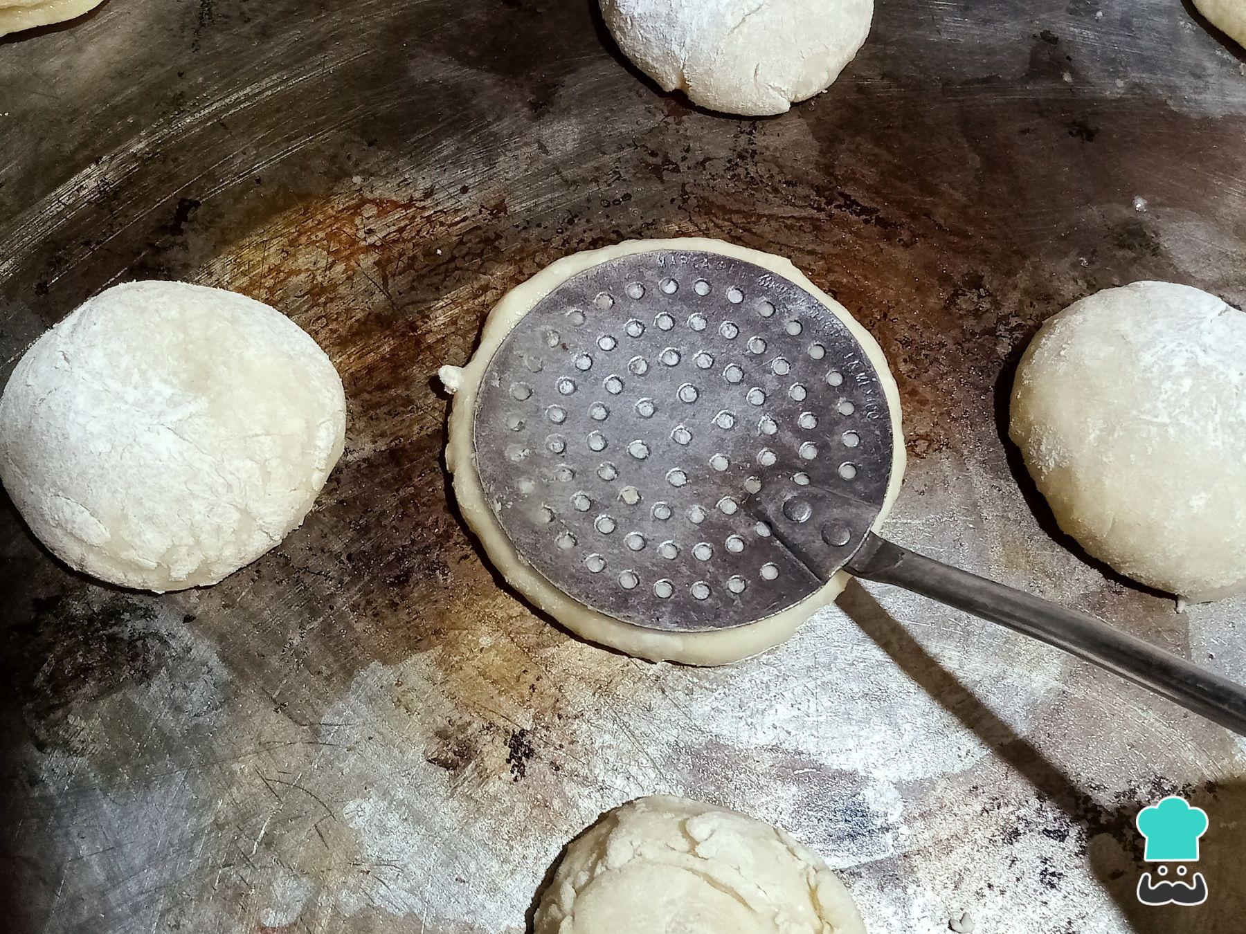 Aplasta las bolitas suavemente ya sea con la mano o con ayuda de una espátula para formar las gorditas.