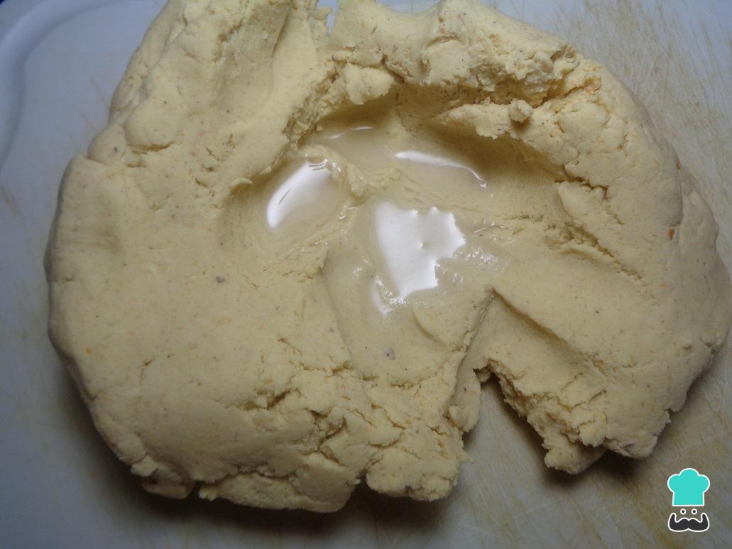 Mientras tanto tomamos nuestra masa para gorditas y le agregamos un poco de agua para suavizarla y hacerla más maleable.