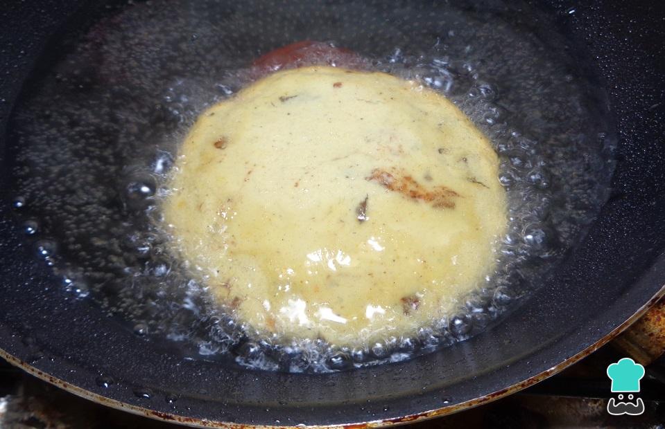 Una vez formada nuestra gordita de migajas la colocamos en un sartén con el aceite muy caliente para que se fría muy bien y se cueza la masa de la gordita mexicana, que ya que es gruesa tardará entre 8 y 10 minutos en estar bien cocida. La vamos cambiando de cara para la cocción cada par de minutos.