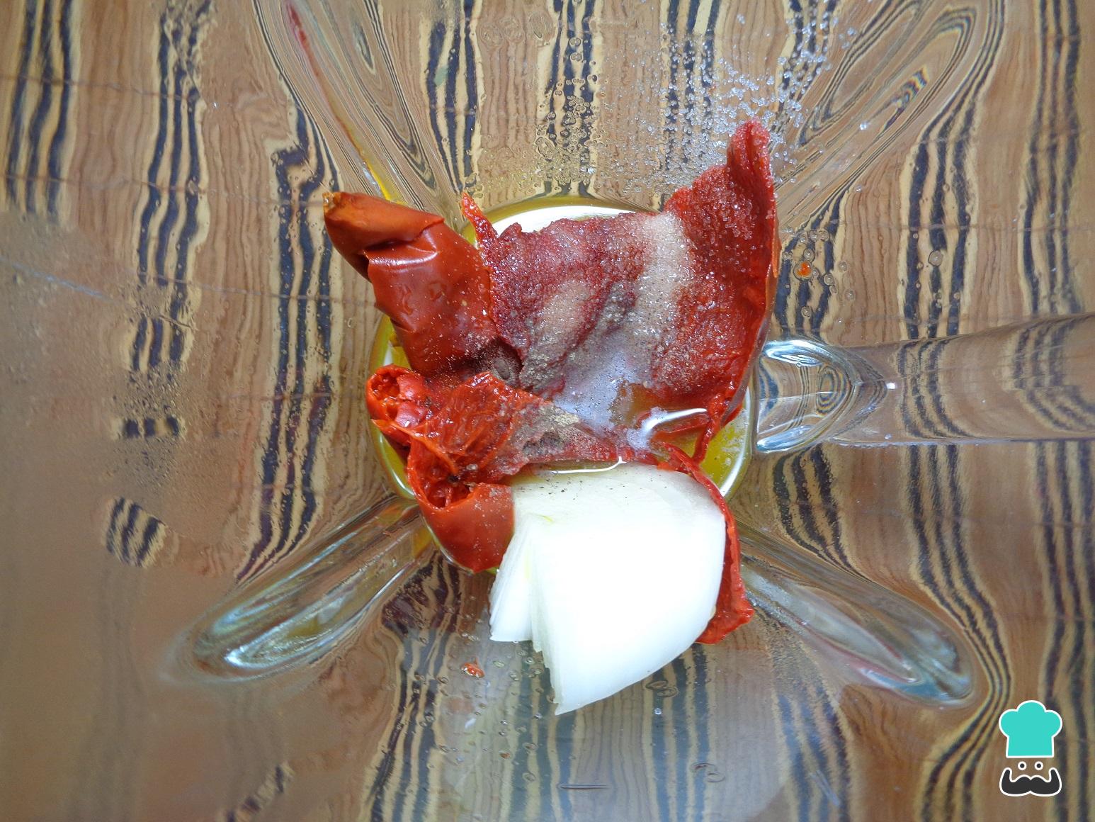 Una vez blandos, escurrimos los chiles y los colocamos en la licuadora, agregamos la cebolla, el ajo, sal, orégano, los jugos de fruta y el vinagre de manzana. Hecho esto, trituramos hasta obtener una mezcla homogénea y reservamos para continuar con la receta de la gringa al pastor.