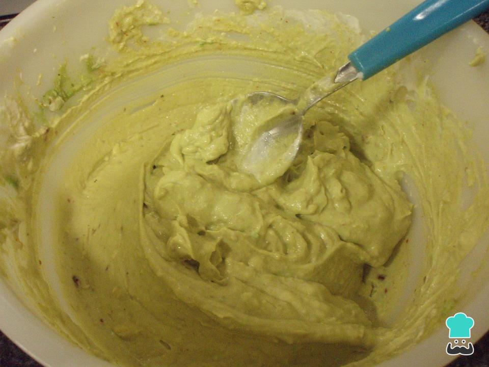 Mezcla el queso crema con el aguacate y unas gotas de Tabasco si quieres darle un toque picante a esta estupenda crema de aguacate para untar. Revuelve todo bien hasta integrar por completo el queso.