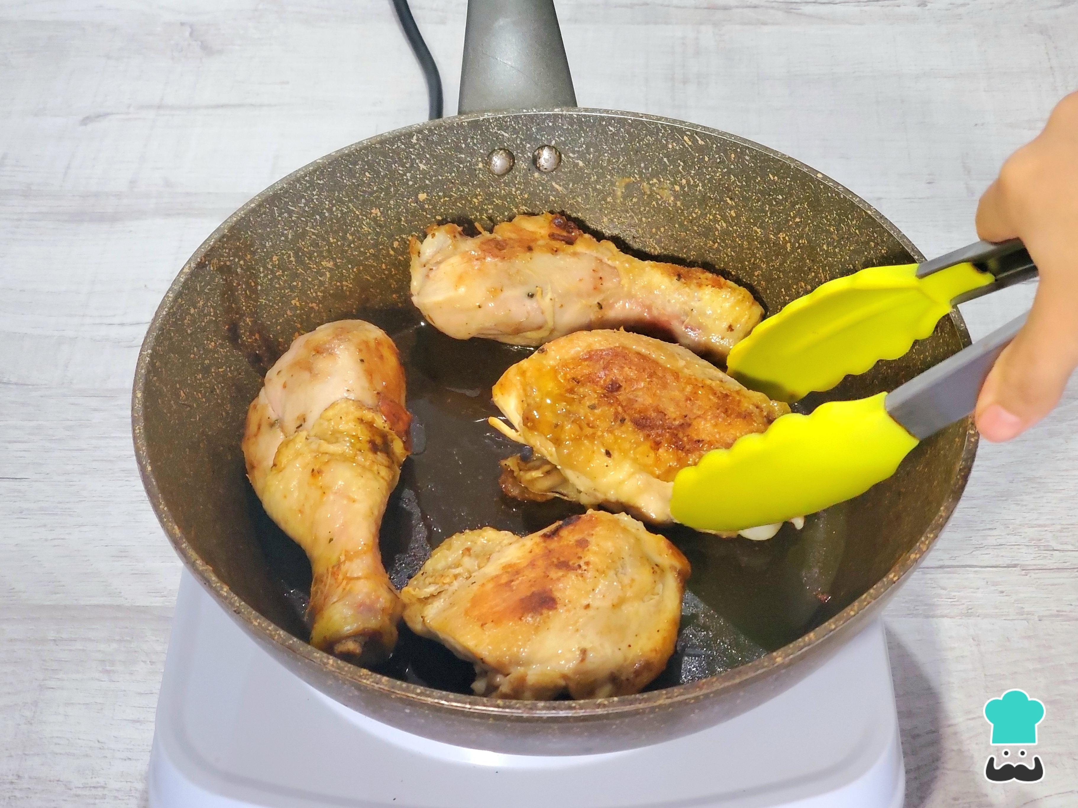 Para preparar estofado de pollo o guiso, comienza sellando las piezas de pollo. En una olla o sartén profunda, calienta un buen chorro de aceite y, cuando esté bien caliente, coloca cuidadosamente las piezas de pollo previamente salpimentadas. Una vez doradas por ambos lados, retíralas y reserva.