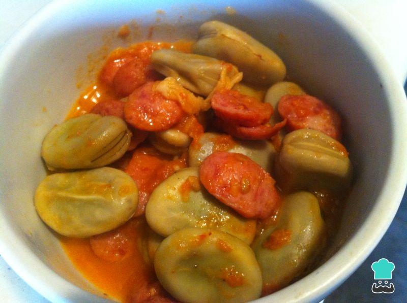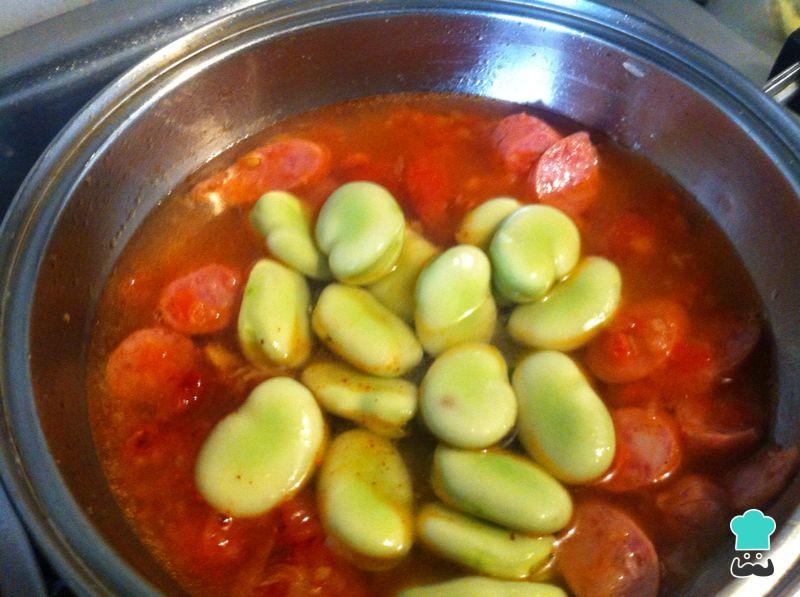 Cómo hacer Habas guisadas con chorizo y tomate: