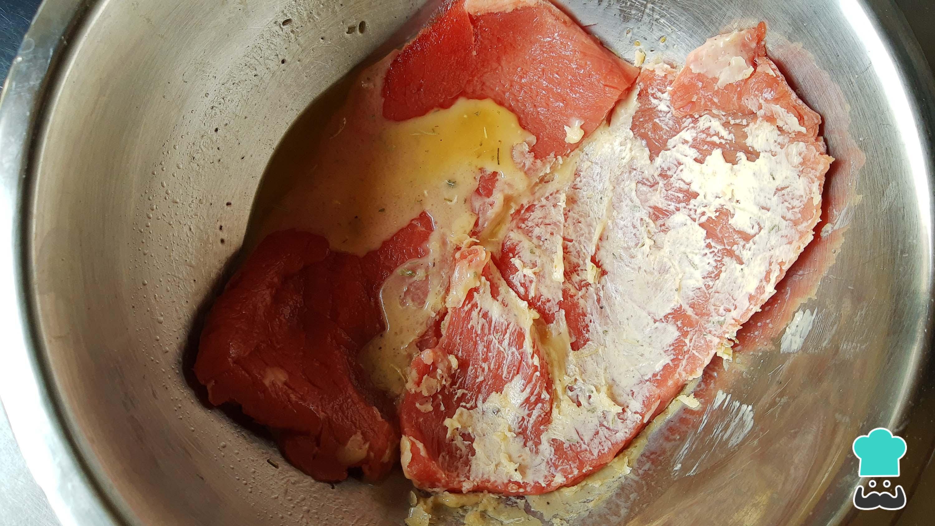 Luego, coloca la arrachera en el recipiente con especias y barniza muy bien la carne, cubre con un trapo o plástico transparente y deja que se marine por mínimo 1 hora para que la carne se impregne muy bien con las especias.
