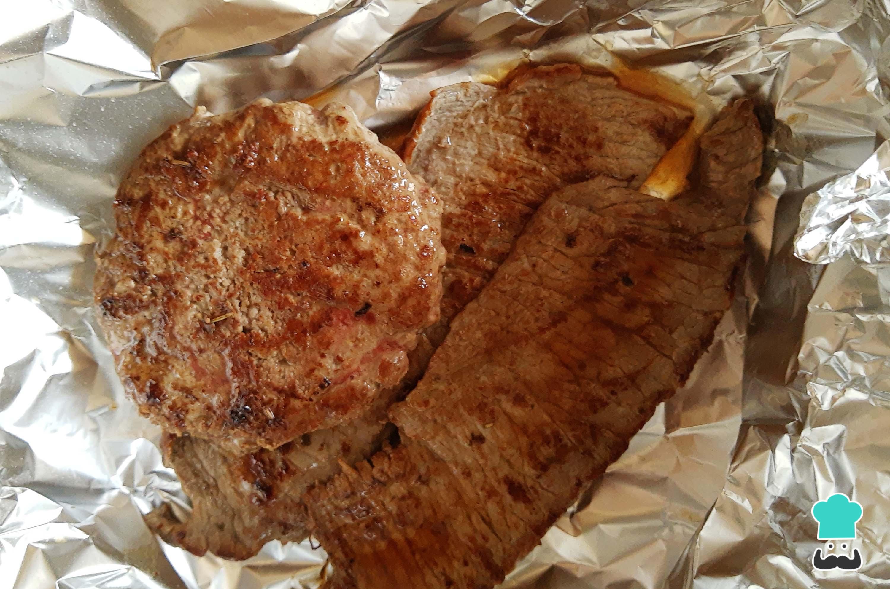 Cuando la arrachera ya este cocida, colócala sobre papel aluminio, cubre bien para que repose y suelte sus jugos.