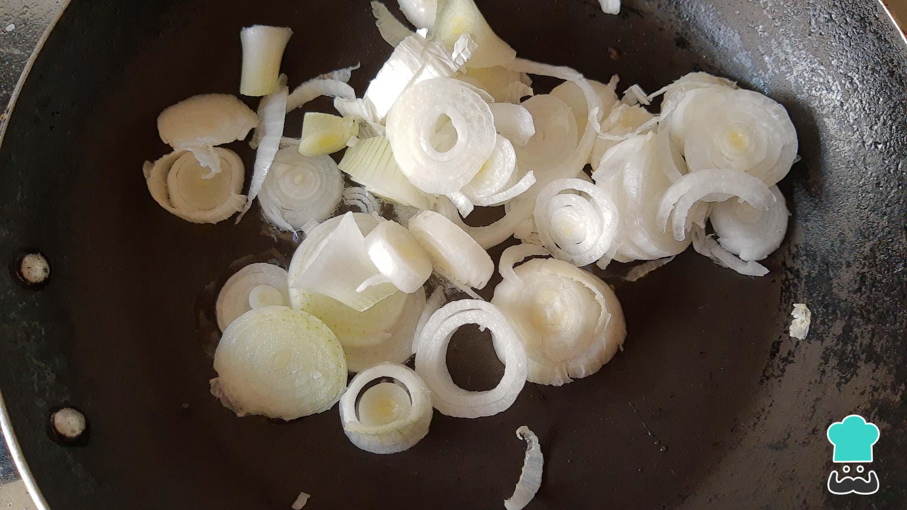 Mientras reposa la carne, en un sartén con un poco de aceite sofríe la cebolla cambray hasta dorarla un poco. Bastará con unos 3 minutos moviendo constantemente, luego retira del fuego y reserva.