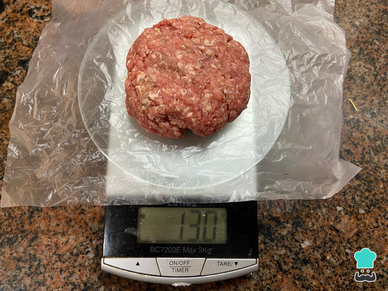 Separa porciones de aproximadamente 130 gr. Arma primero bolitas y, luego, aplástalas para formar las hamburguesas.