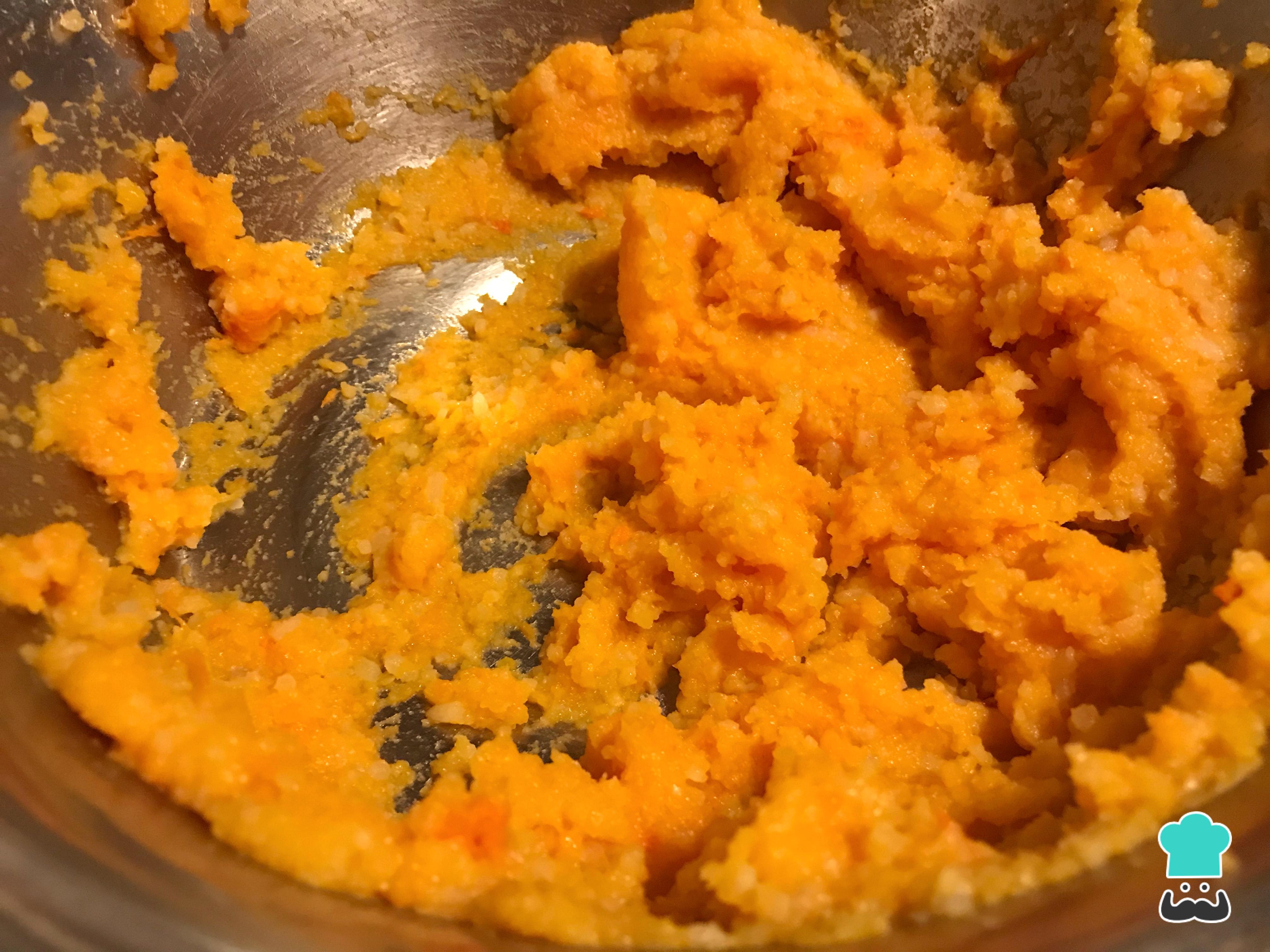 Procesa la calabaza cocida con el arroz condimentado y prueba la masa. Una vez que estés conforme con el sabor, lleva la preparación a la heladera aproximadamente unos 10 minutos y pasado ese tiempo, agrega la cucharada de harina.