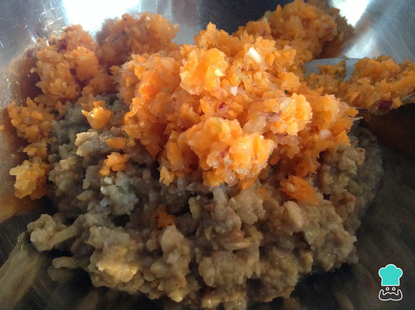 Añade el huevo a la masa de hamburguesas vegetarianas para ayudar a compactarla más al momento de la cocción. Si eres vegano puedes añadir una cucharada de semillas de chía hidratadas para reemplazar el huevo.