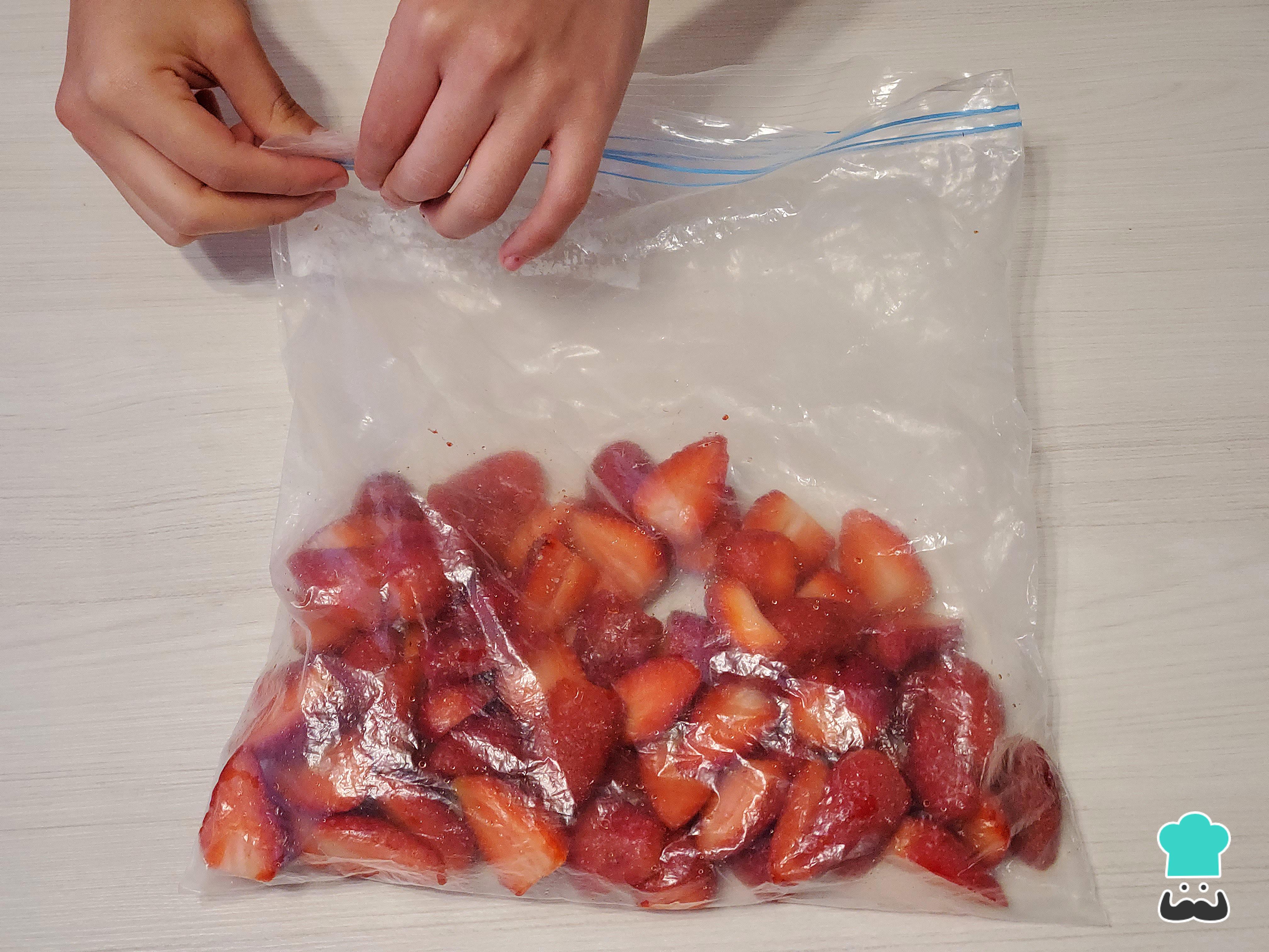 Coloca estas fresas limpias dentro de una bolsa con cierre y congélalas durante toda la noche.
