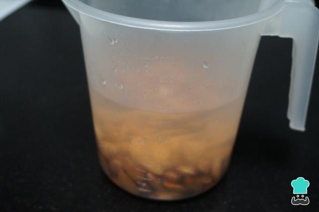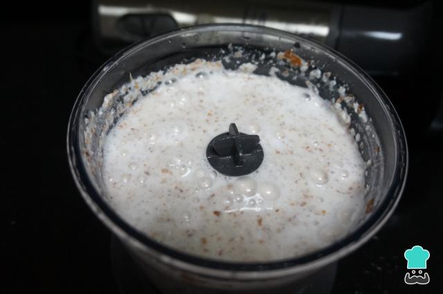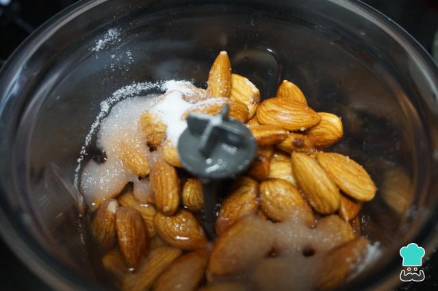 Pasado el tiempo de reposo, tira el agua, pon las almendras en un robot, licuadora o batidora, añade los 100 g de azúcar y 500 ml de agua. Tritúralo todo muy bien para obtener tu horchata de almendras.