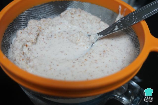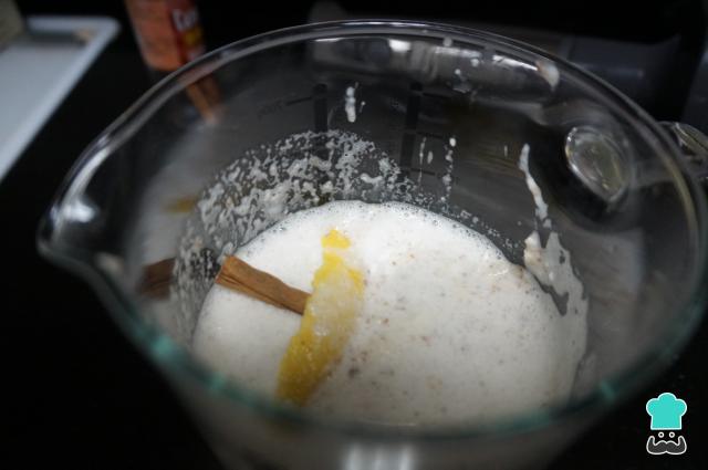 Saca la horchata de la nevera, retira la canela y la piel de limón. Hecho esto, cuela la bebida usando un colador, un tamiz o una gasa, que deberás colocar sobre un bol. Escurre bien la preparación para sacar todo el jugo posible.