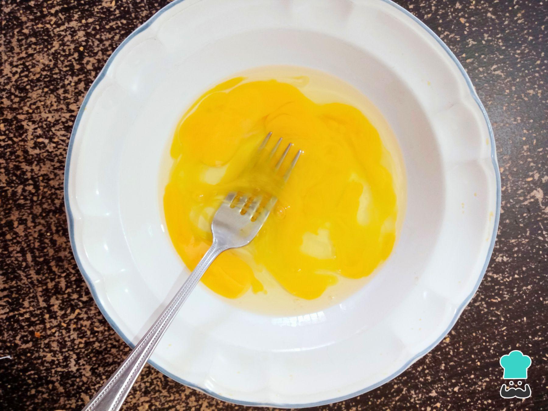 En un plato aparte, casca los huevos, agrega sal y pimienta al gusto, bátelos bien.