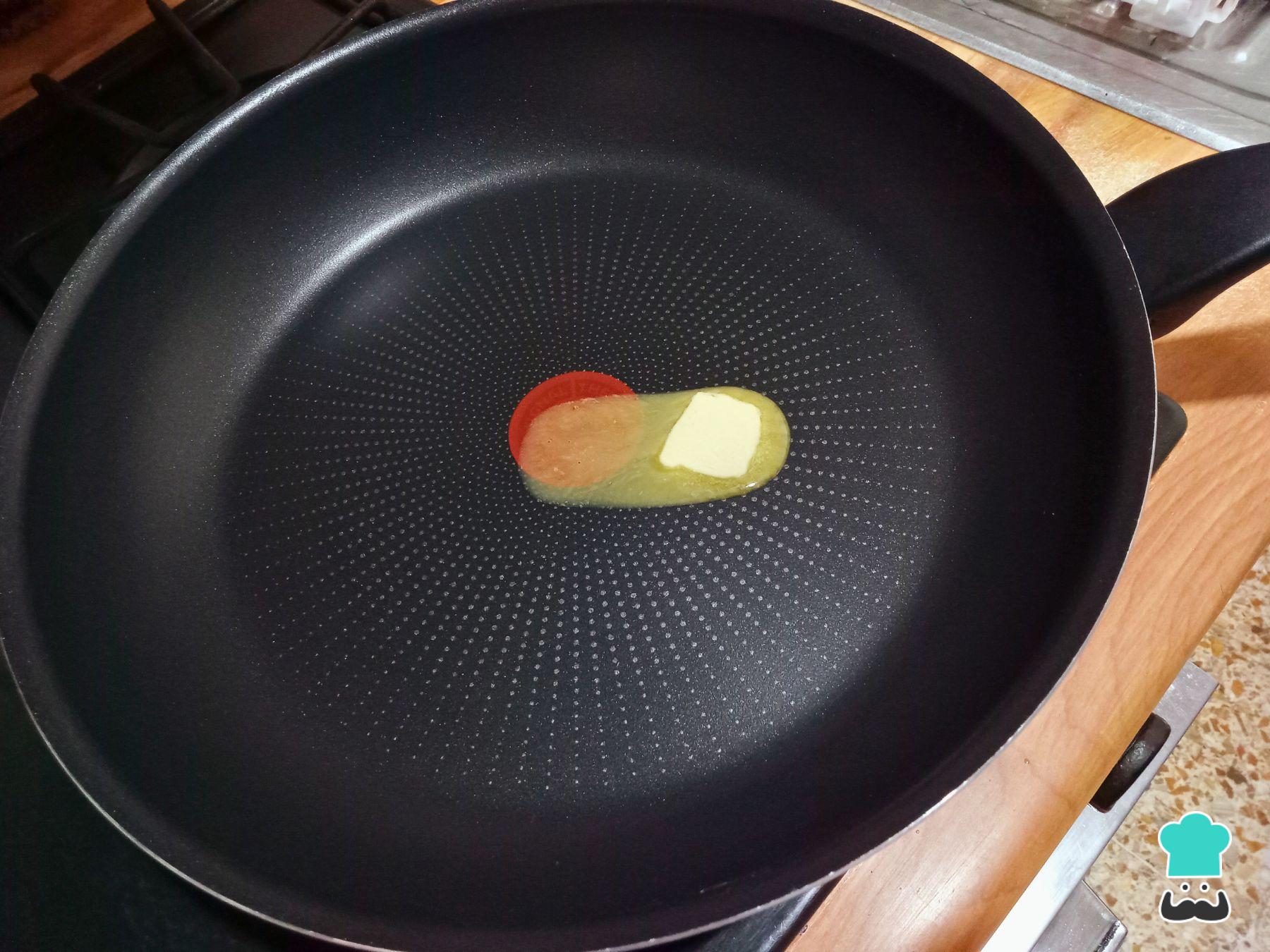 En una sartén grande, añade un poco de mantequilla y calienta a fuego medio.
