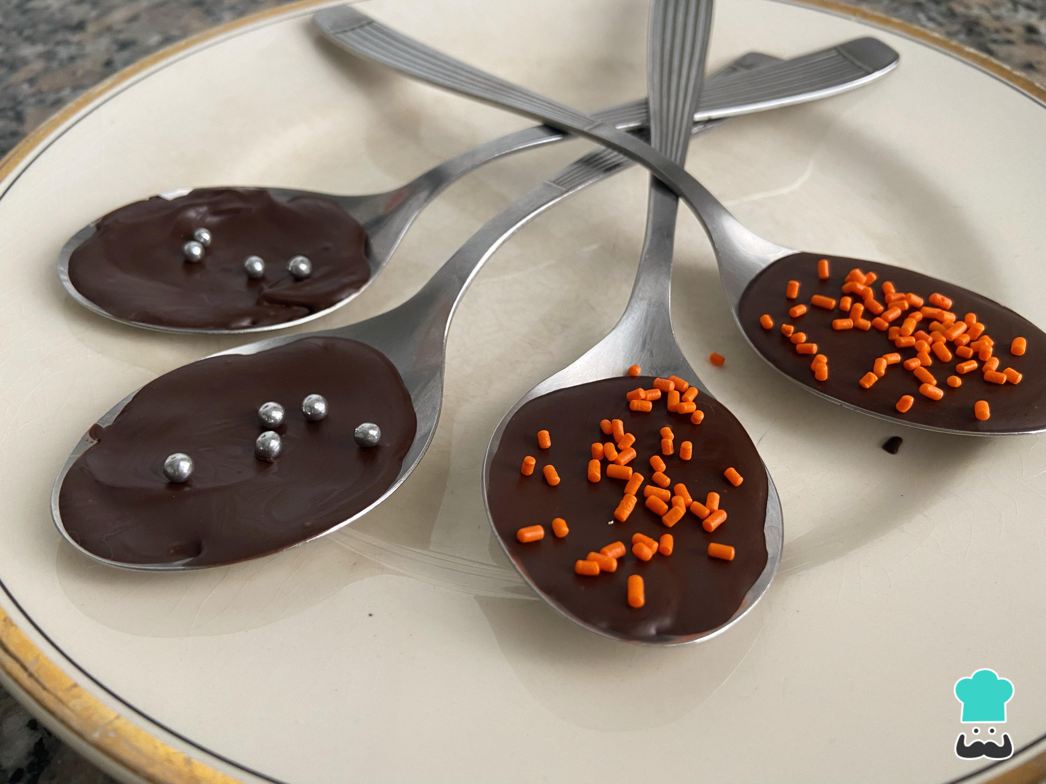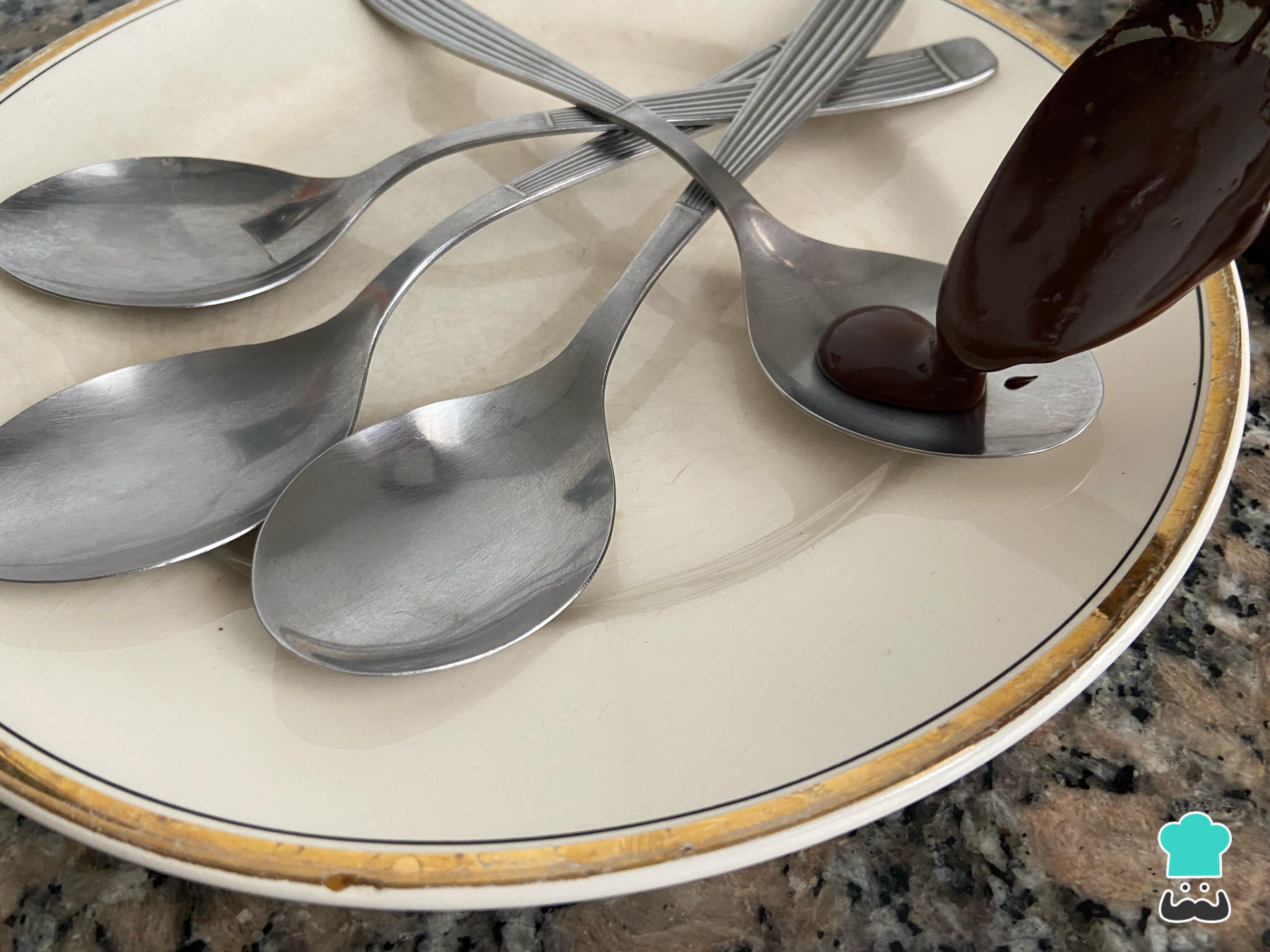 Procede a rellenar las cucharas limpias con el chocolate que has derretido.