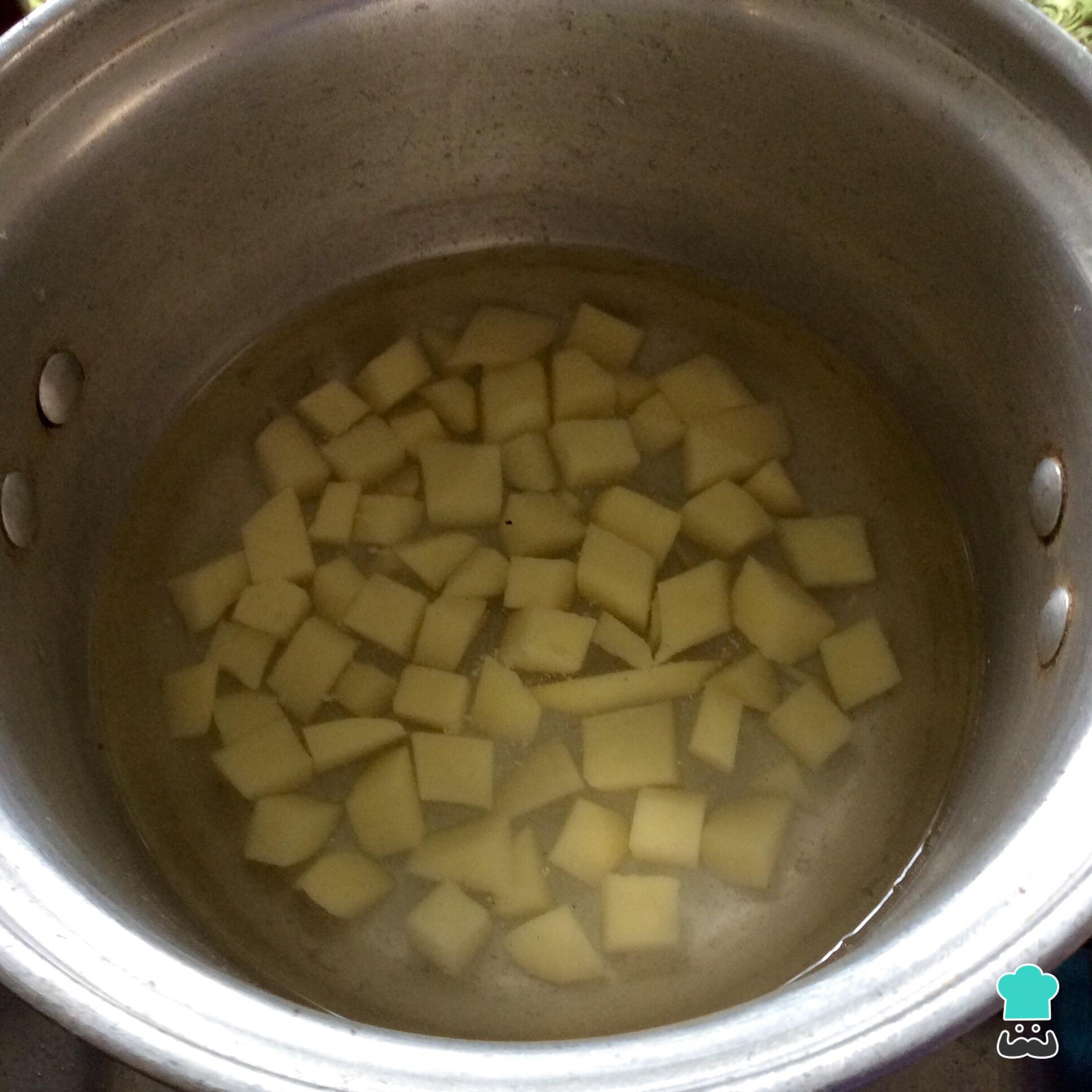 Pela las patatas, córtalas en cuadros pequeños y cocínalas en agua durante 20 minutos, agrega una pizca de sal.