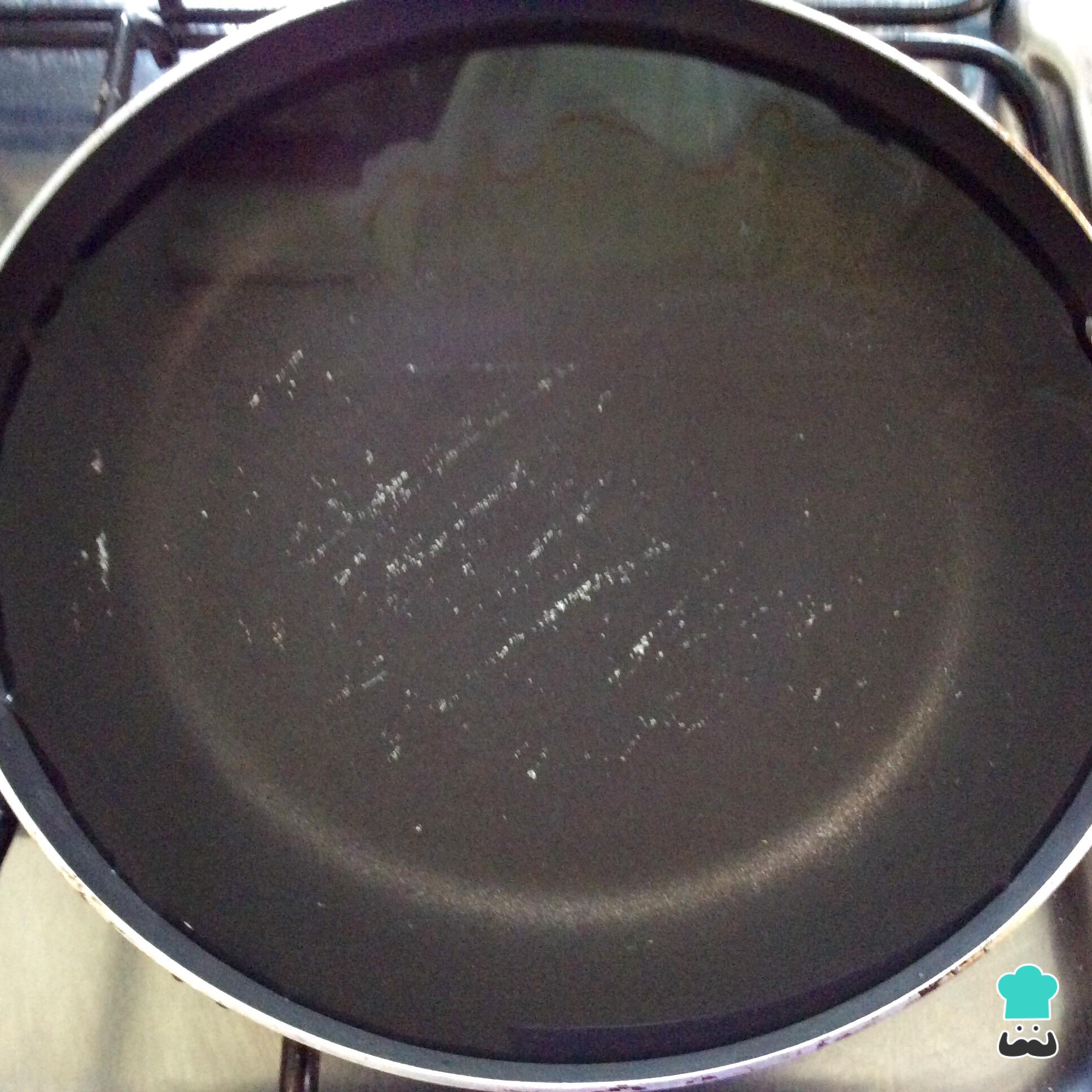En una sartén añade agua y caliéntala hasta que veas que va a hervir, en ese momento colócala a fuego bajo y agrega un chorro de vinagre blanco.