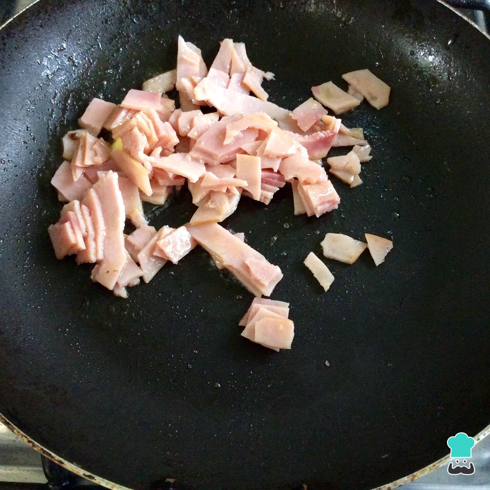 Aparte, saltea en otra sartén con un poco de mantequilla el jamón cortado en cubos durante 3 minutos a fuego medio.