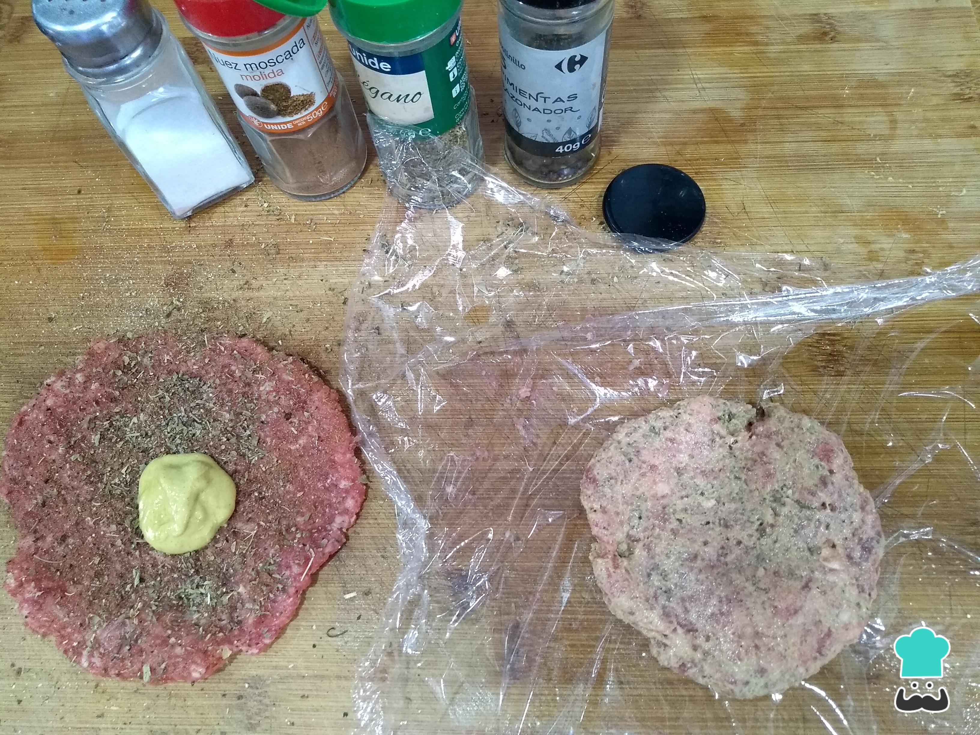 Truco: Si trabajas la carne sobre un trozo de plástico film será mucho más sencillo hacer la forma de la foto.