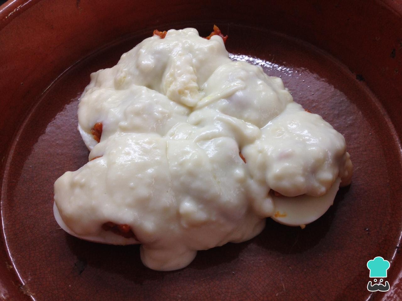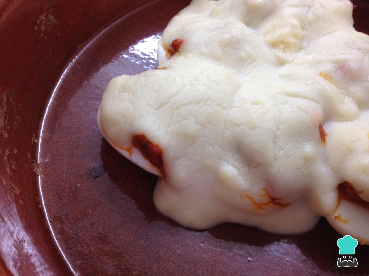 Después cubrimos los huevos rellenos de carne con la salsa de bechamel. Los introducimos en el horno unos 20 minutos y ¡listos!