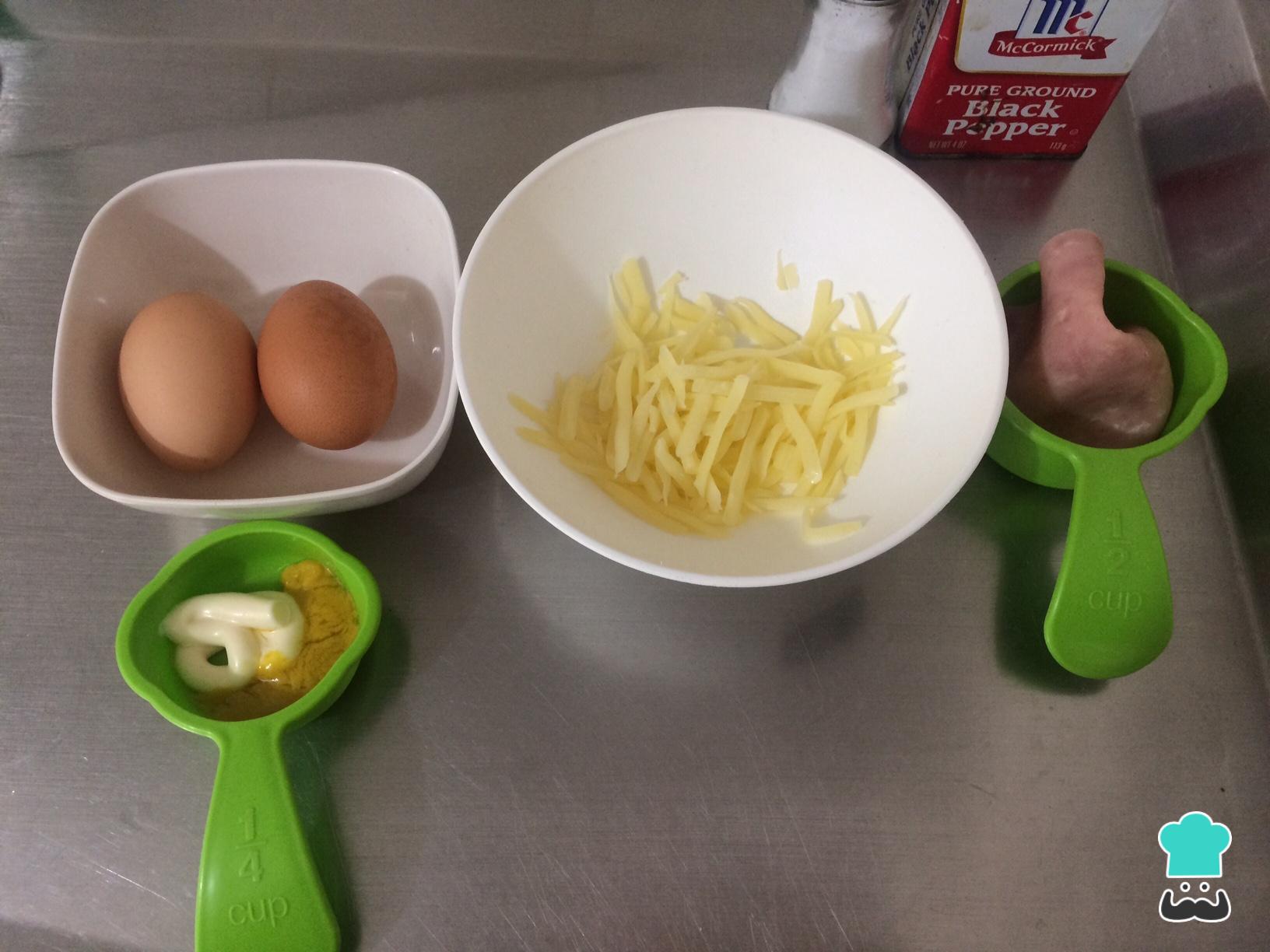 Antes de realizar estos huevos rellenos gratinados, el primer paso es alistar todos los ingredientes.