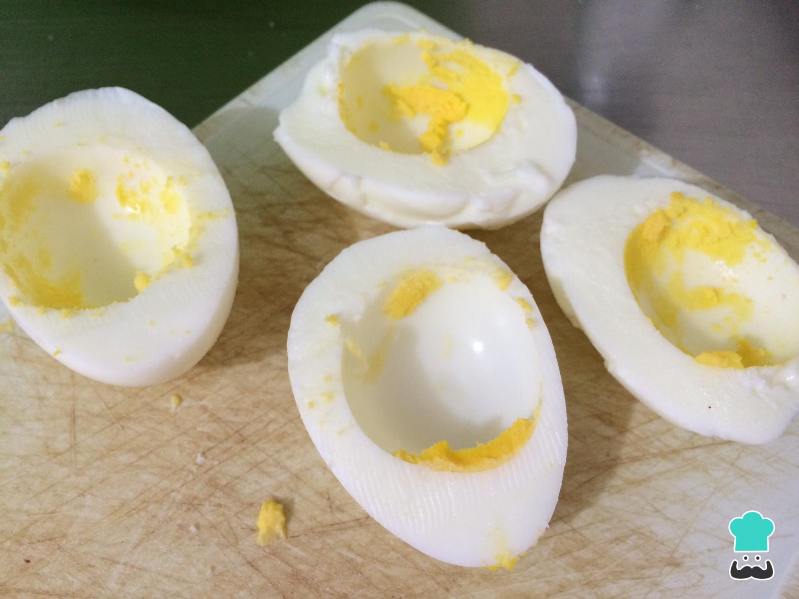 Corta el huevo de forma vertical y retirar la yema, así como se ve en la foto. Reservar.