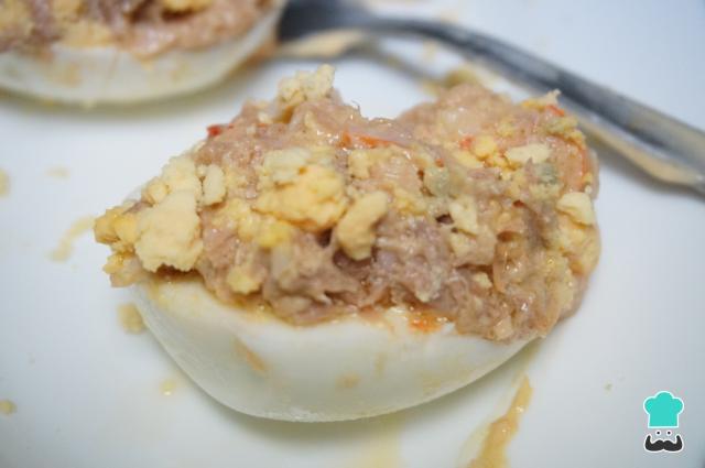Otra opción totalmente válida es hacer huevos rellenos de marisco y alioli sustituyendo la salsa rosa por esta otra. Para ello, no te pierdas nuestra receta de alioli.