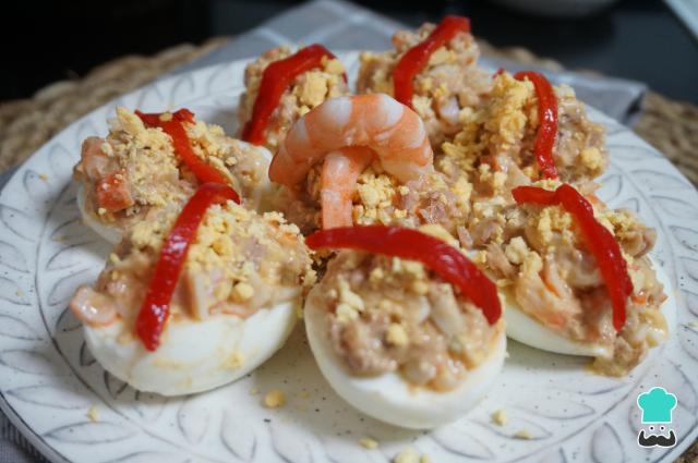 Vamos a preparar unos huevos rellenos de marisco, un plato ideal para el verano que, además, podemos preparar con antelación o incluso el día anterior. Aunque podemos rellenar los huevos con múltiples ingredientes, con unas gambas y atún están riquísimos y nos permiten ofrecer un entrante o aperitivo fresco y completo.
