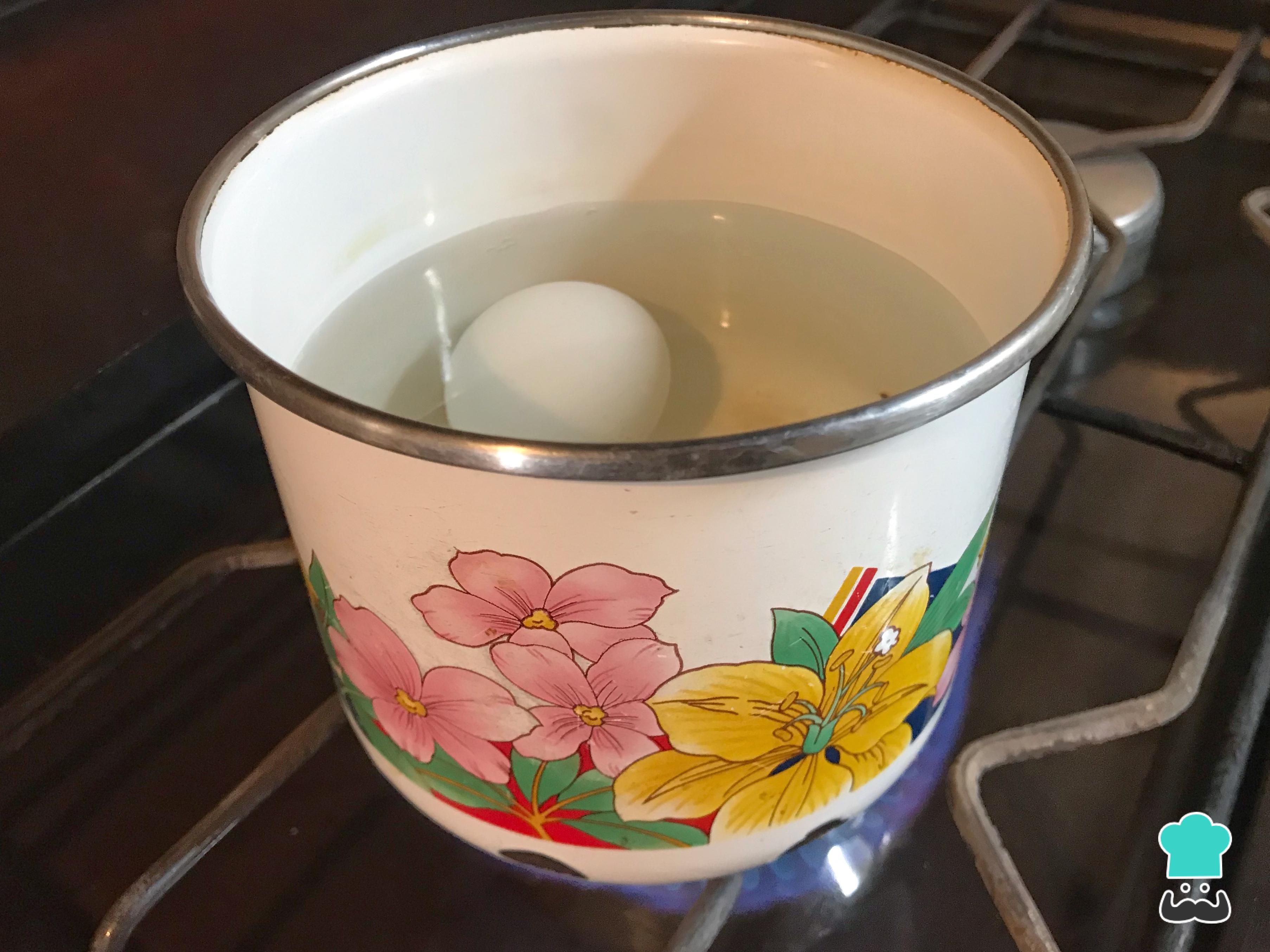 Para empezar a preparar esta receta de huevos rellenos para Halloween primero cocina los huevos. Para ello, llévalos a una olla con suficiente agua fría como para que queden cubiertos y cocínalos por 12 minutos.