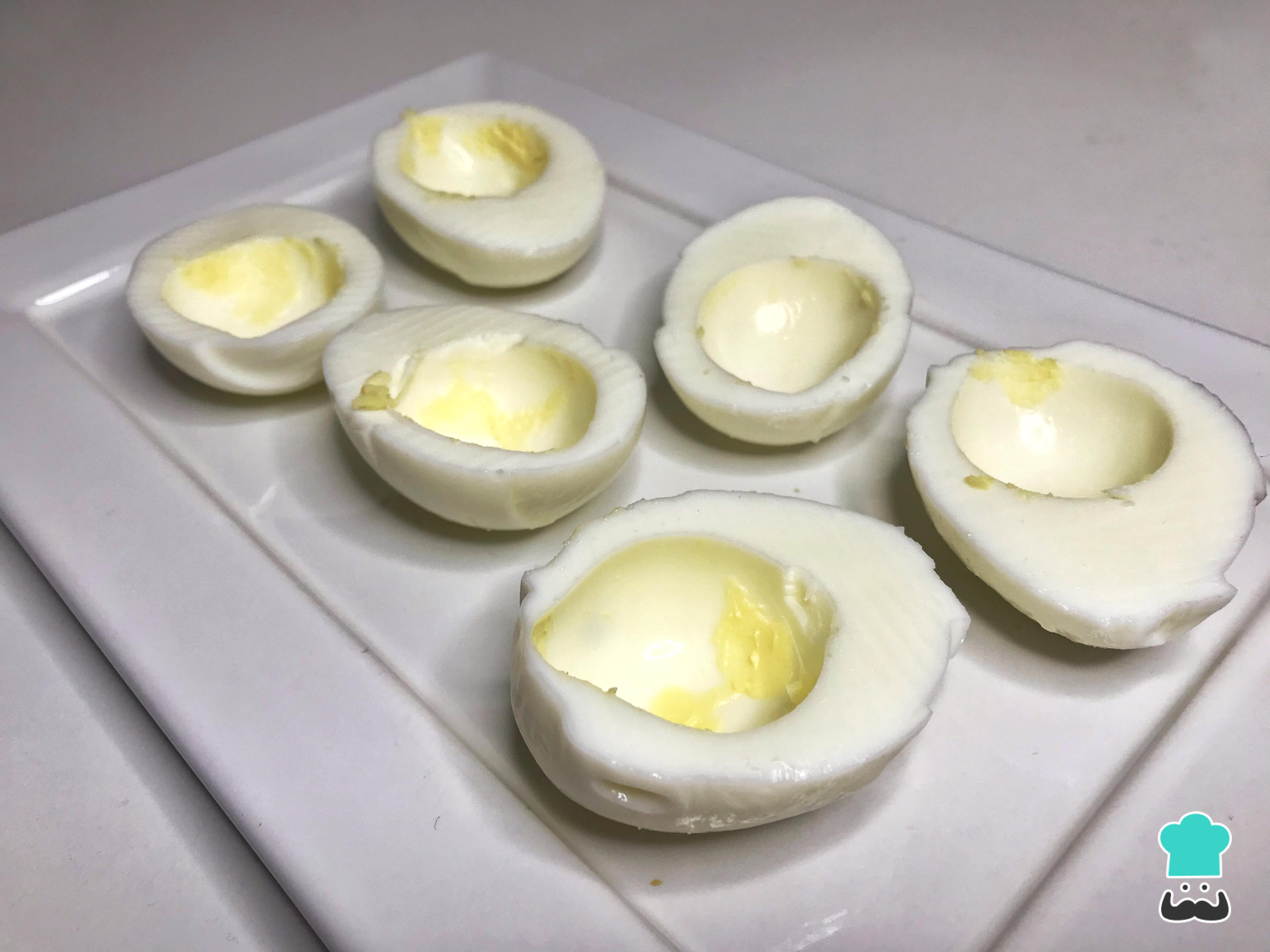 Una vez pasado el tiempo y con cuidado de no quemarte, pela los huevos. Córtalos por el medio y retírales la yema.