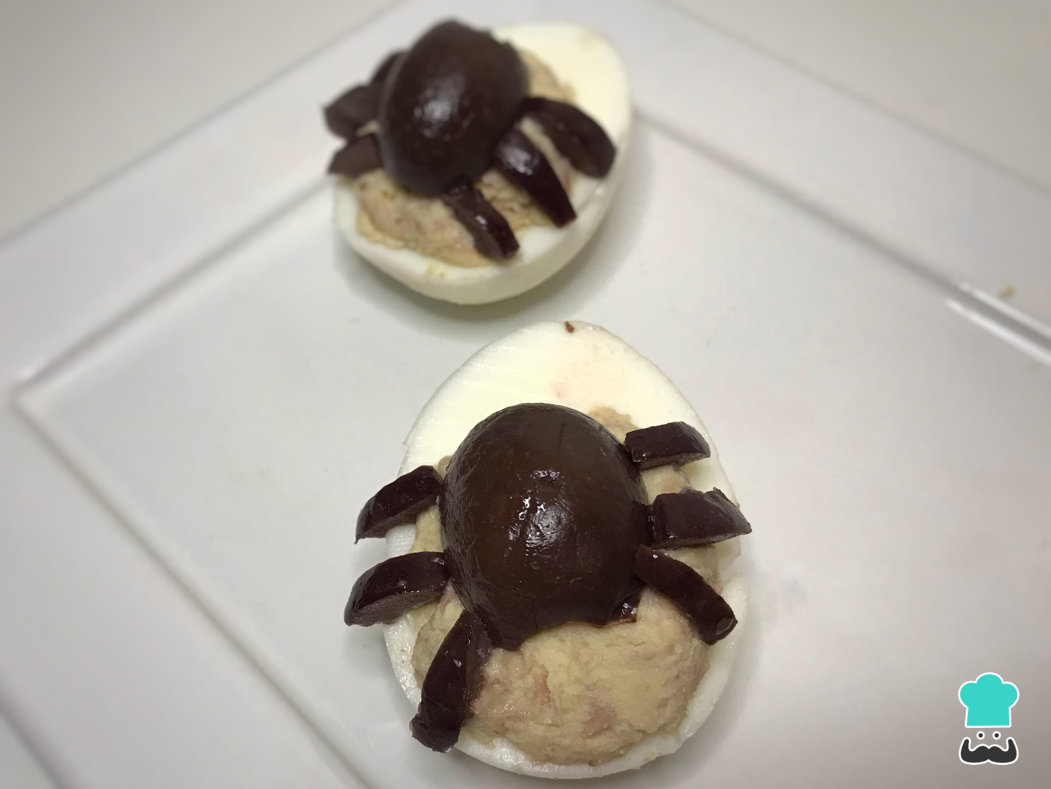 Rellena 2 mitades de huevo y arma las arañas. ¡Lista la segunda opción!